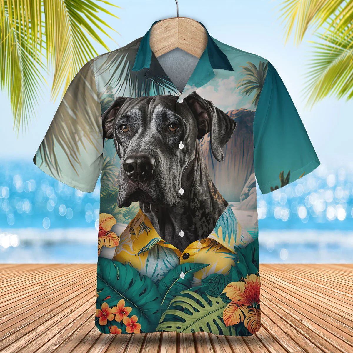 Black Great Dane 3D Tropical Hawaiian Shirt, Dog Hawaiian Shirt, Summer Gifts For Dog Lover