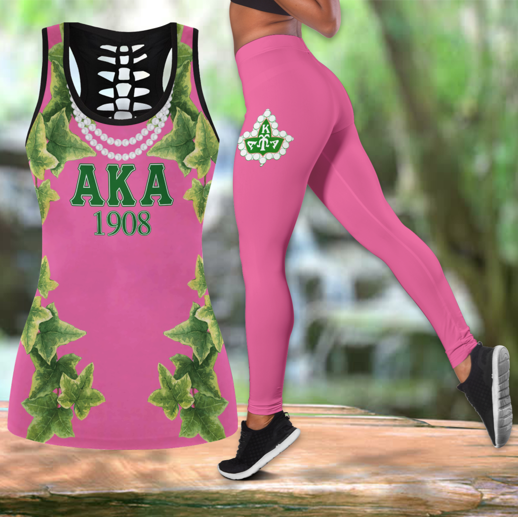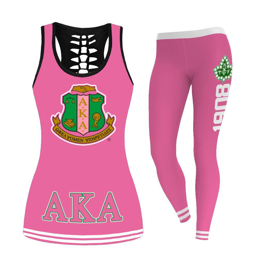 Black Greek New Style For Woman – Alpha Kappa Alpha Tank Top And Legging Set For Women