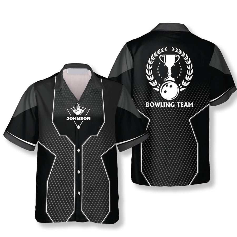 Black Sports Style Trophy Emblem Custom Bowling Hawaiian Shirt, Billiard Team Shirt, Billiard Player