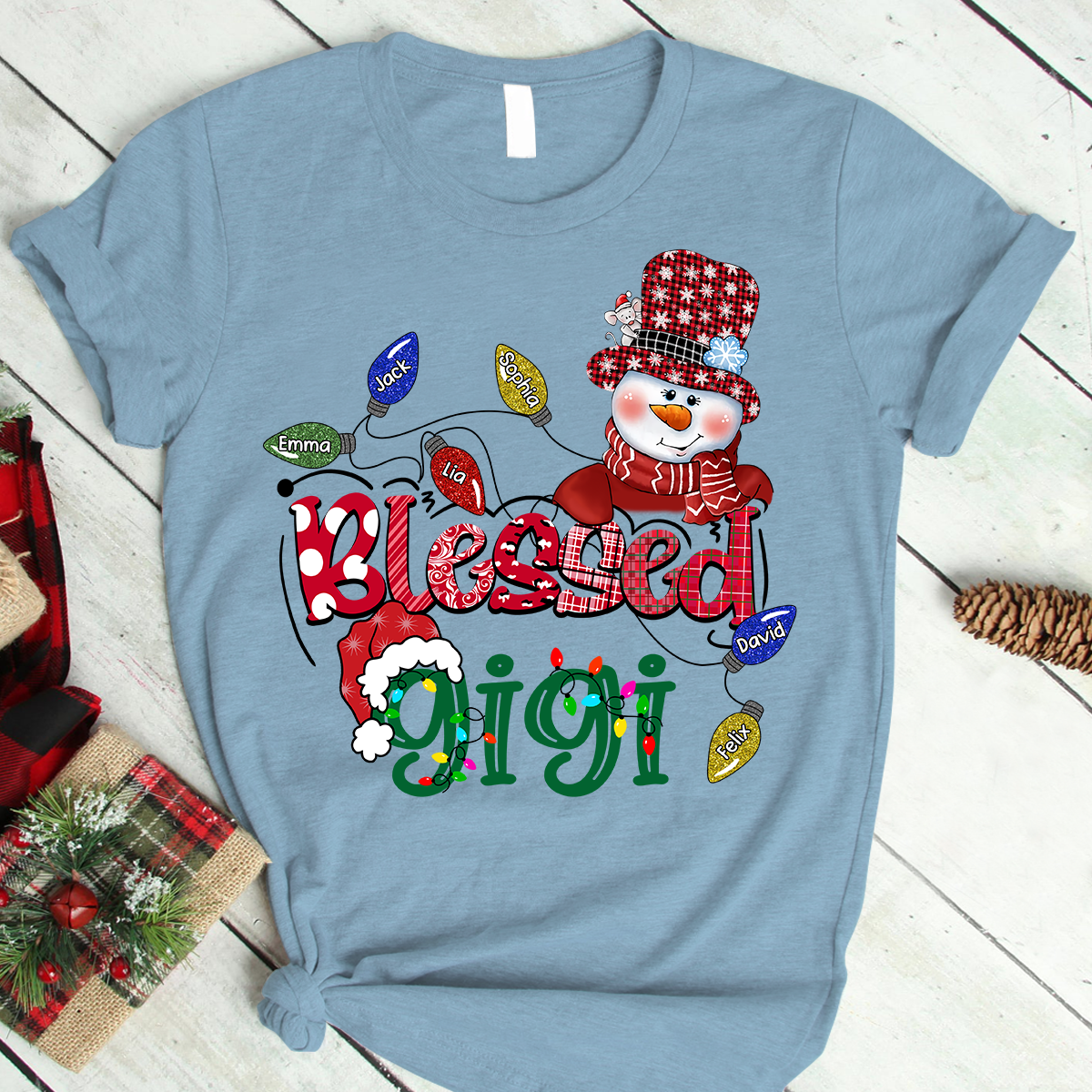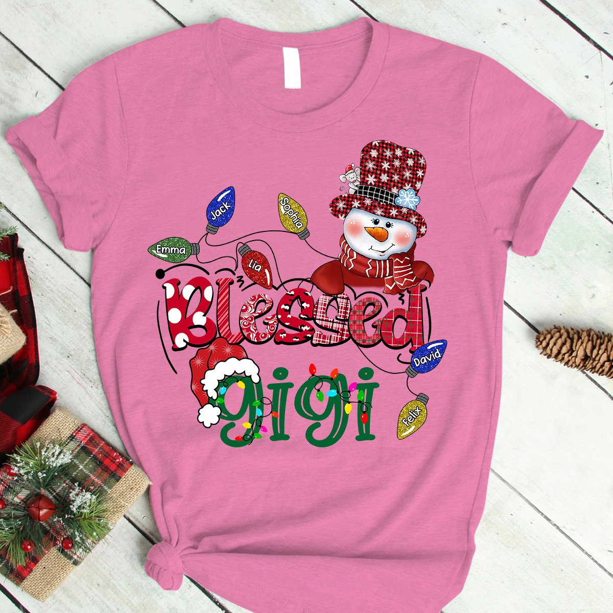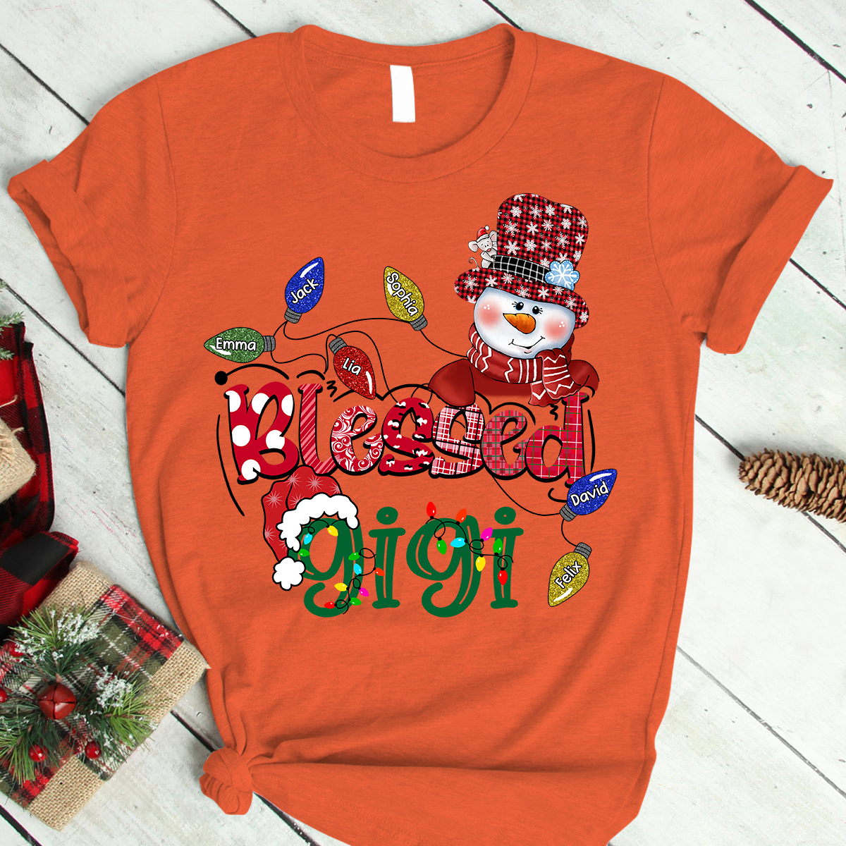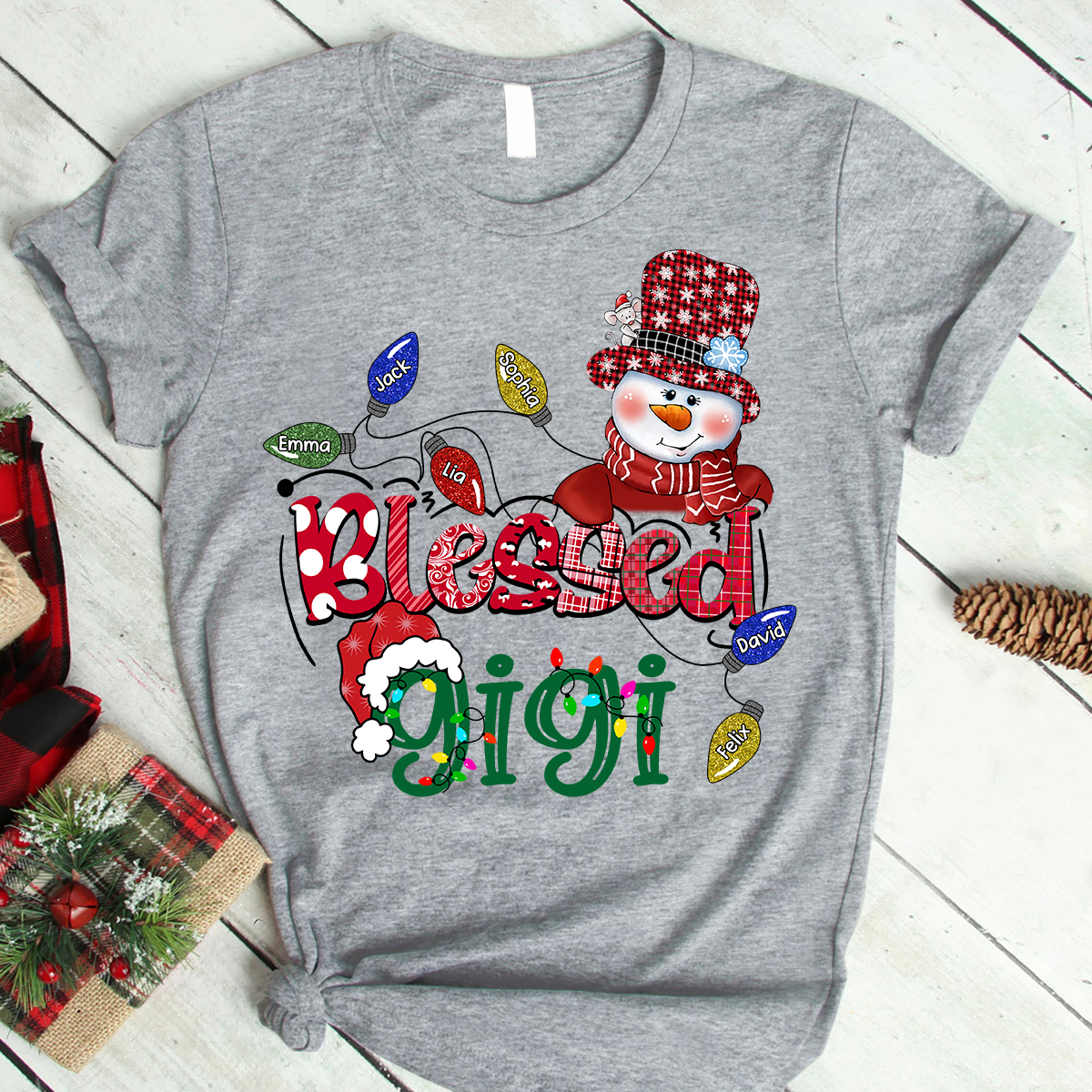Blessed Grandma Snowman Christmas Personalized With Grandkids Shirt Gift