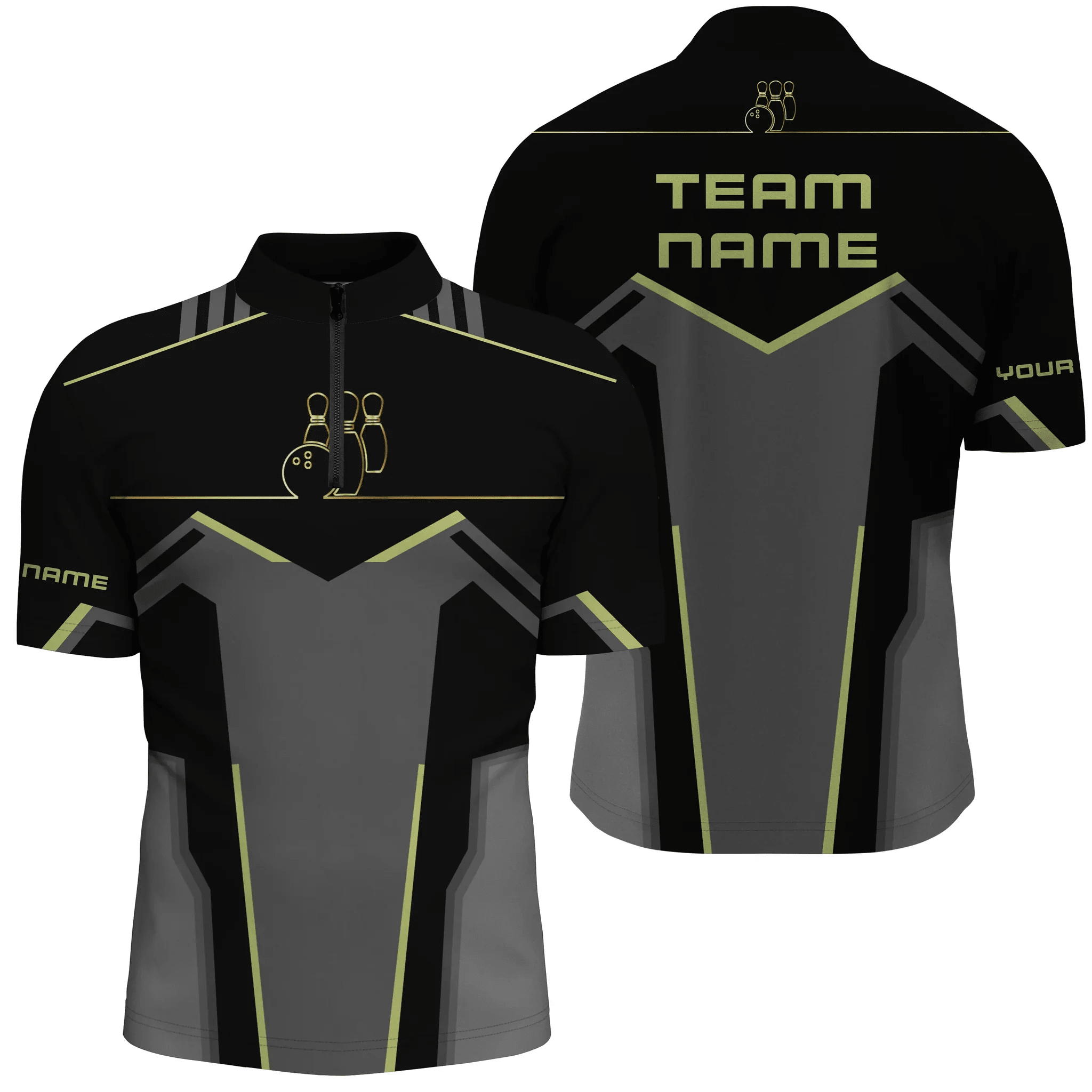 Blue And Black Bowling Quarter Zip Shirts For Men, Custom Name And Team Name Bowling Team Shirts