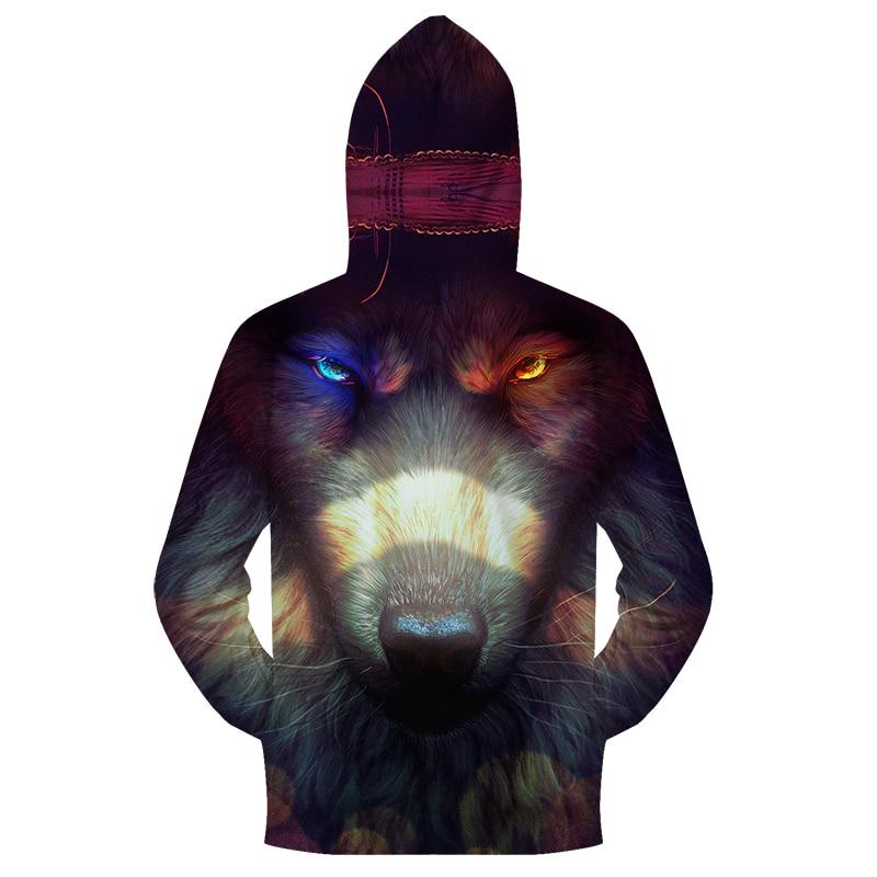 Blue & Orange Eyed Wolf Zip-up Hoodie