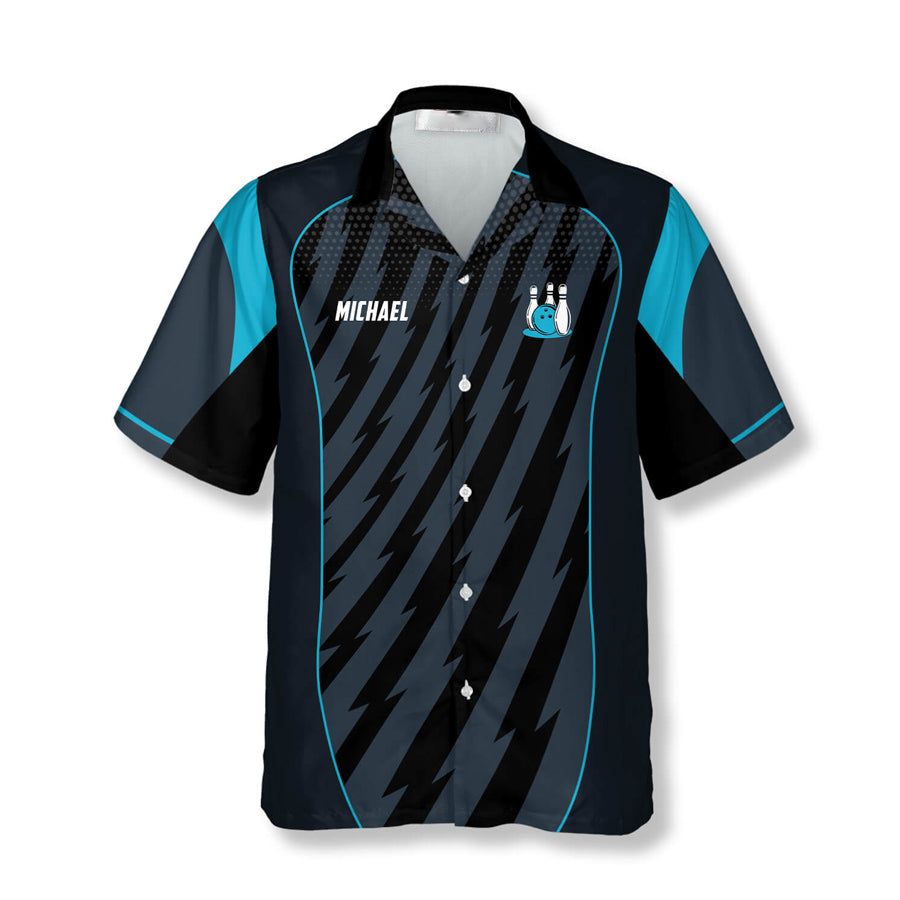 Blue Sports Style Trophy Emblem Custom Bowling Hawaiian Shirt, Bowling Team Shirt, Bowling Player Gift