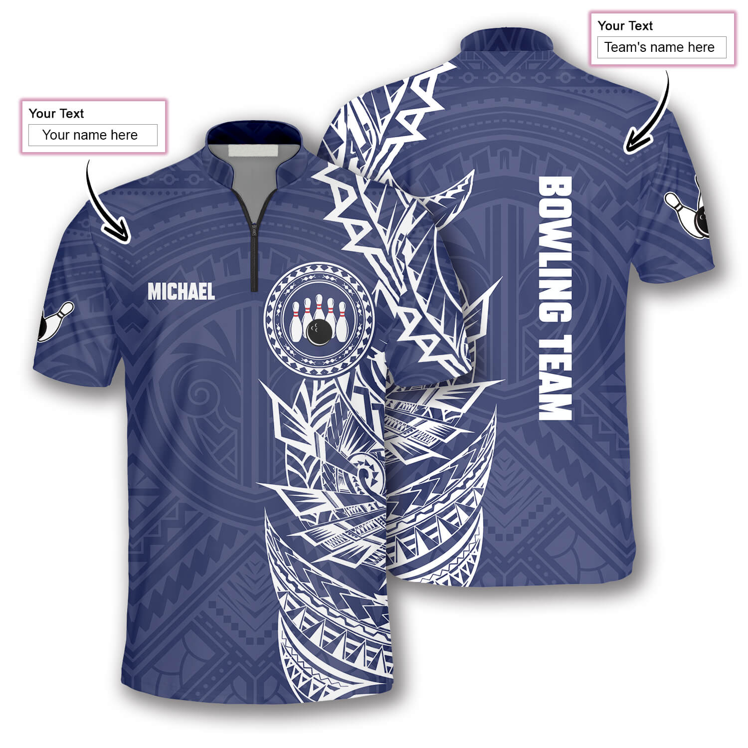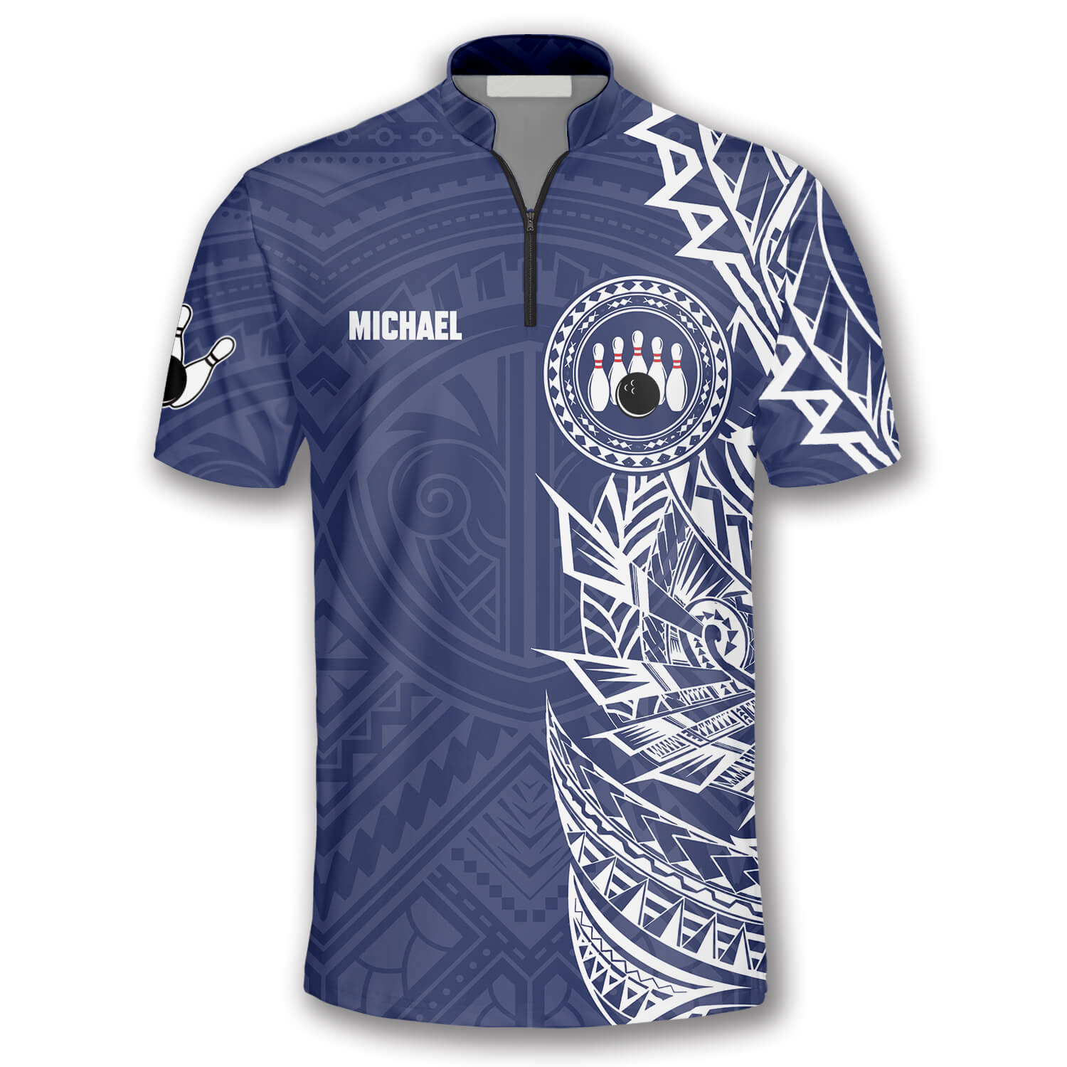 Blue White Tribal Tattoo Custom Bowling Jersey For Men, Best Shirt For Bowling Player