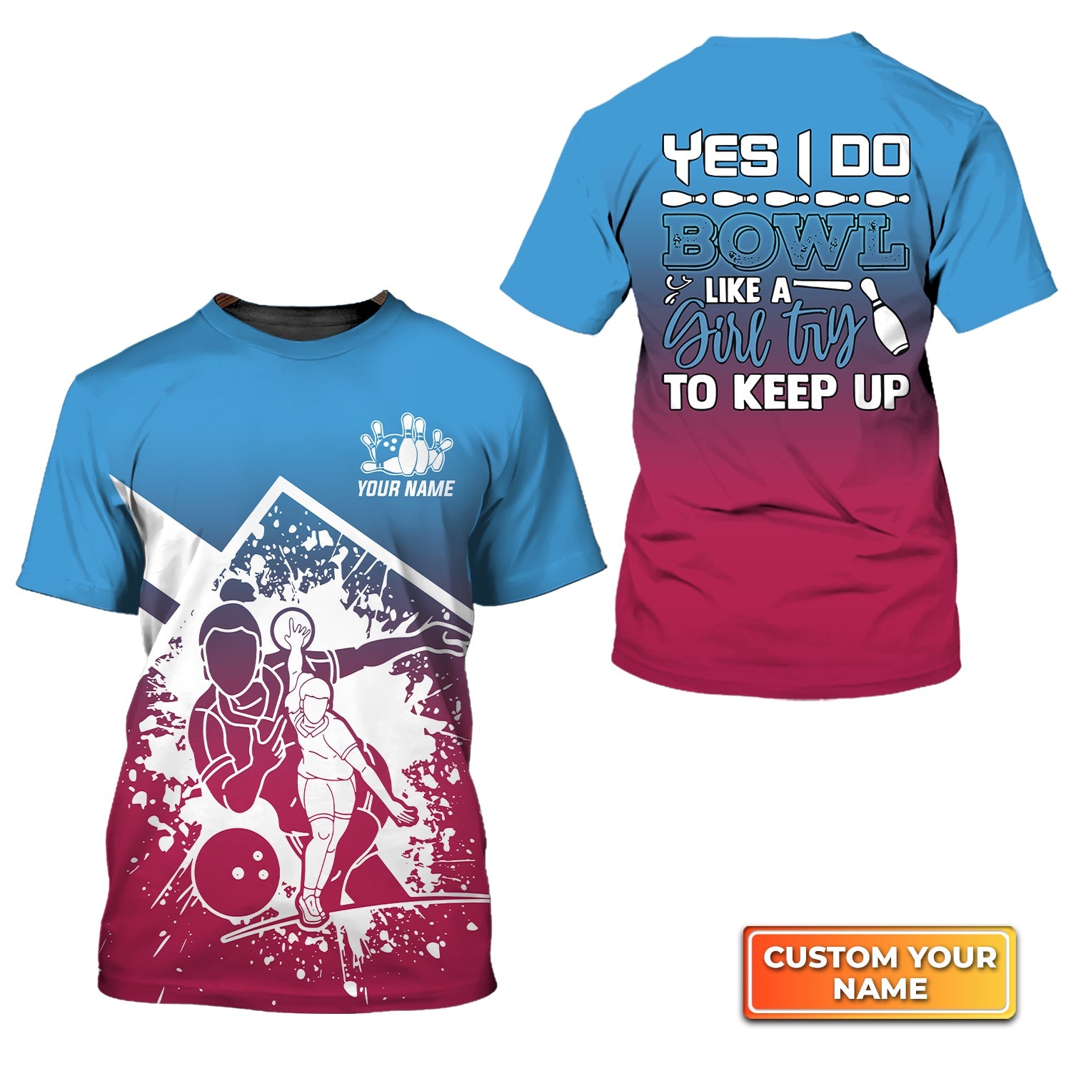 Bowl Like A Girl Try To Keep Up Personalized Name 3D Tshirt Qb95 Gift For Bowler, Bowling Shirt, Bowling Gift, Gift For Bowler