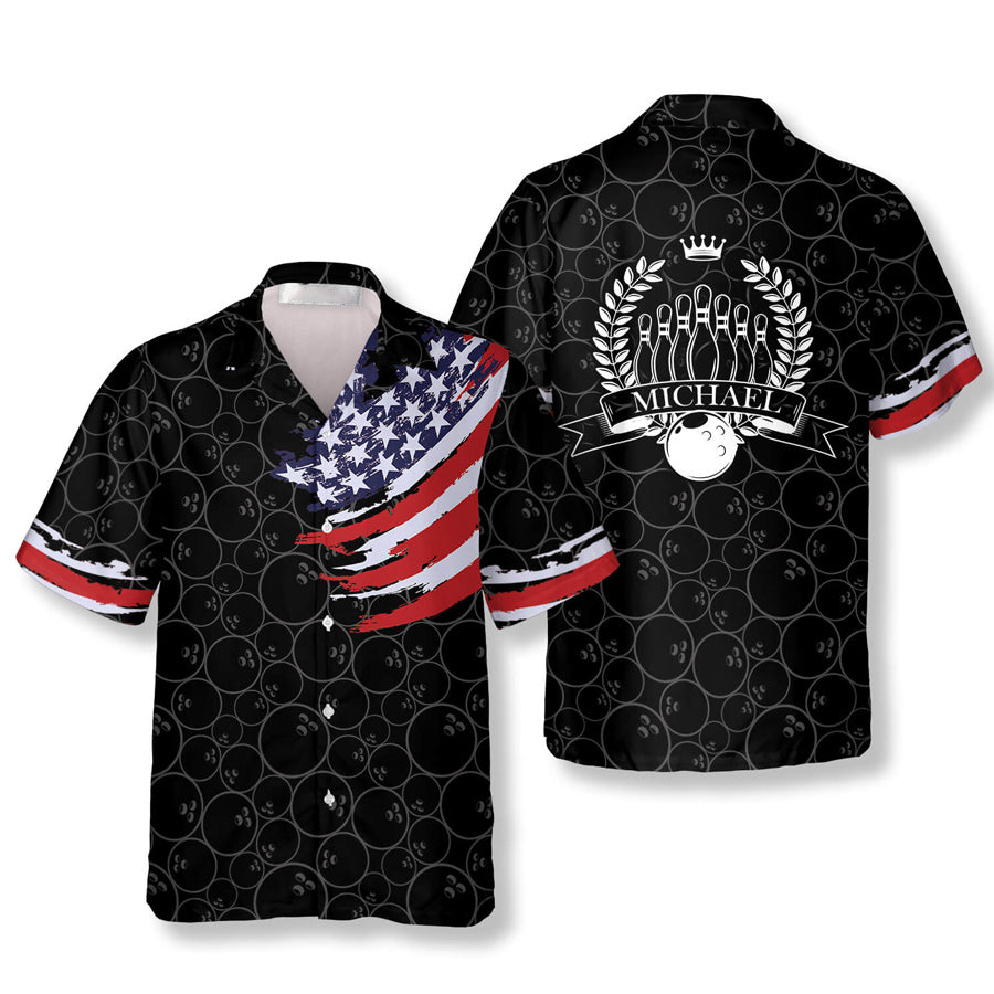 Bowling Pattern Flag Crown Emblem Custom Bowling Hawaiian Shirt