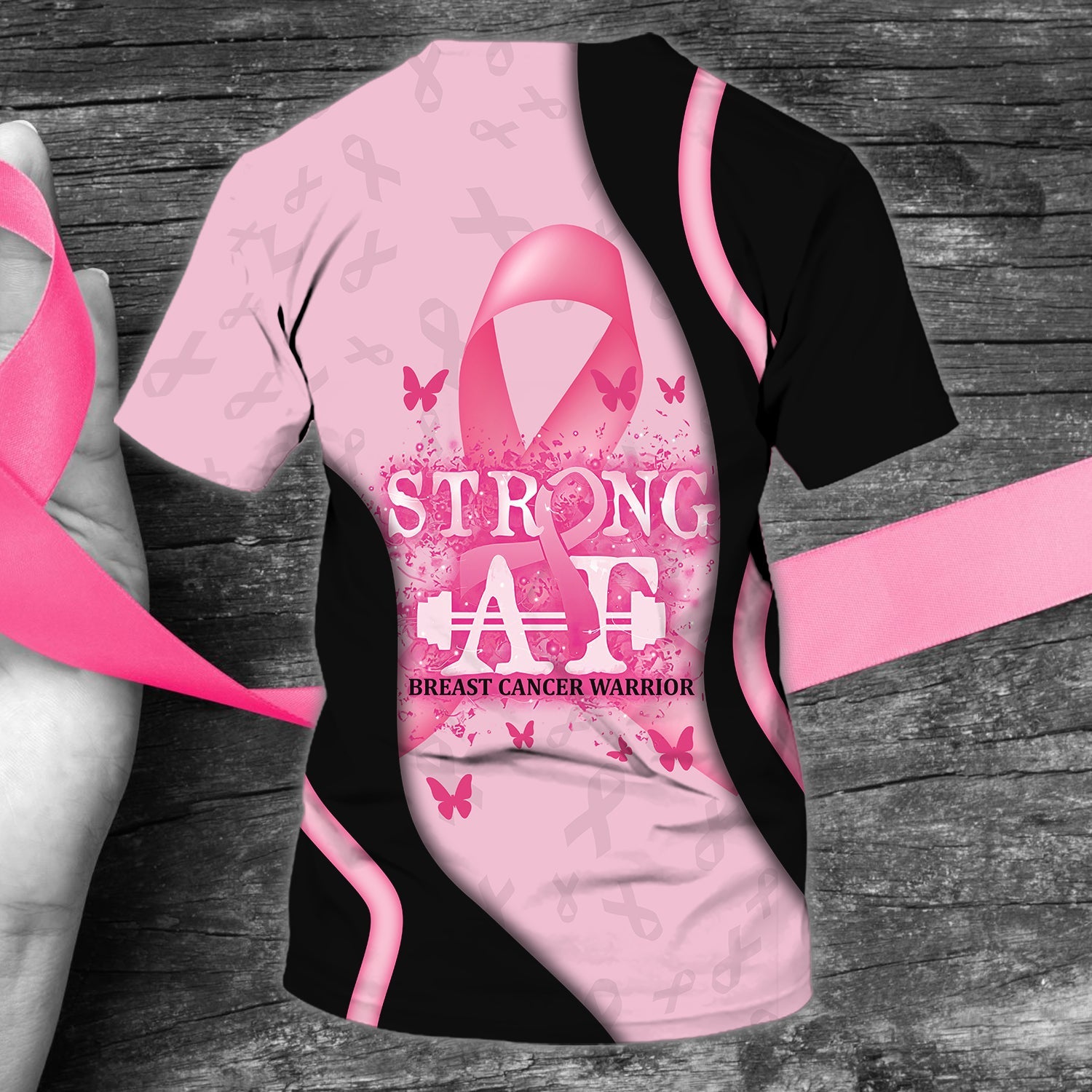 Breast Cancer Awareness – Personalized Name 3D Black And Pink Tshirt