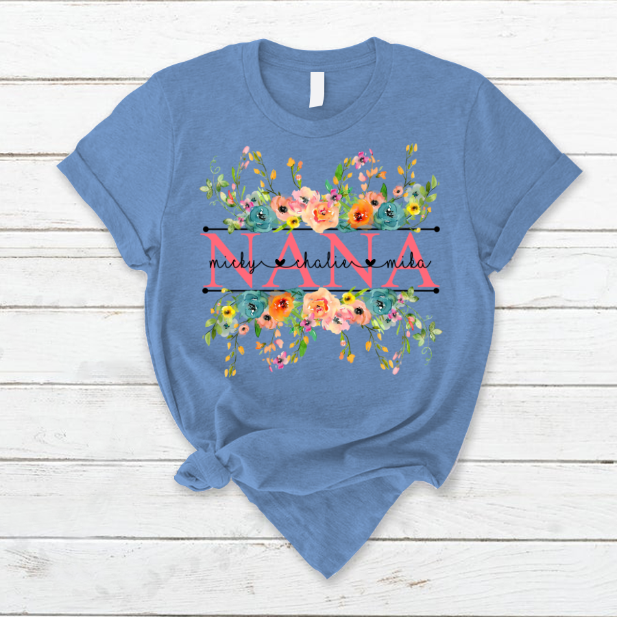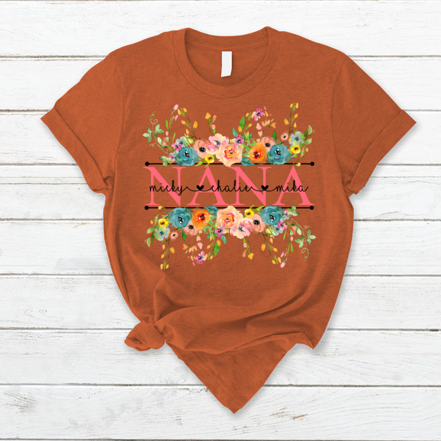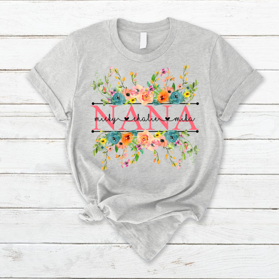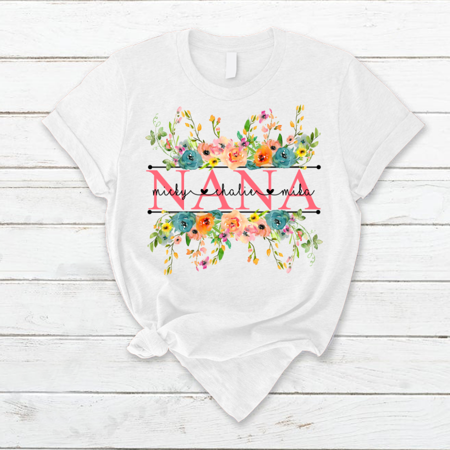Bright Watercolor Floral Nana And Grandkids Flower Cth01 T-Shirt