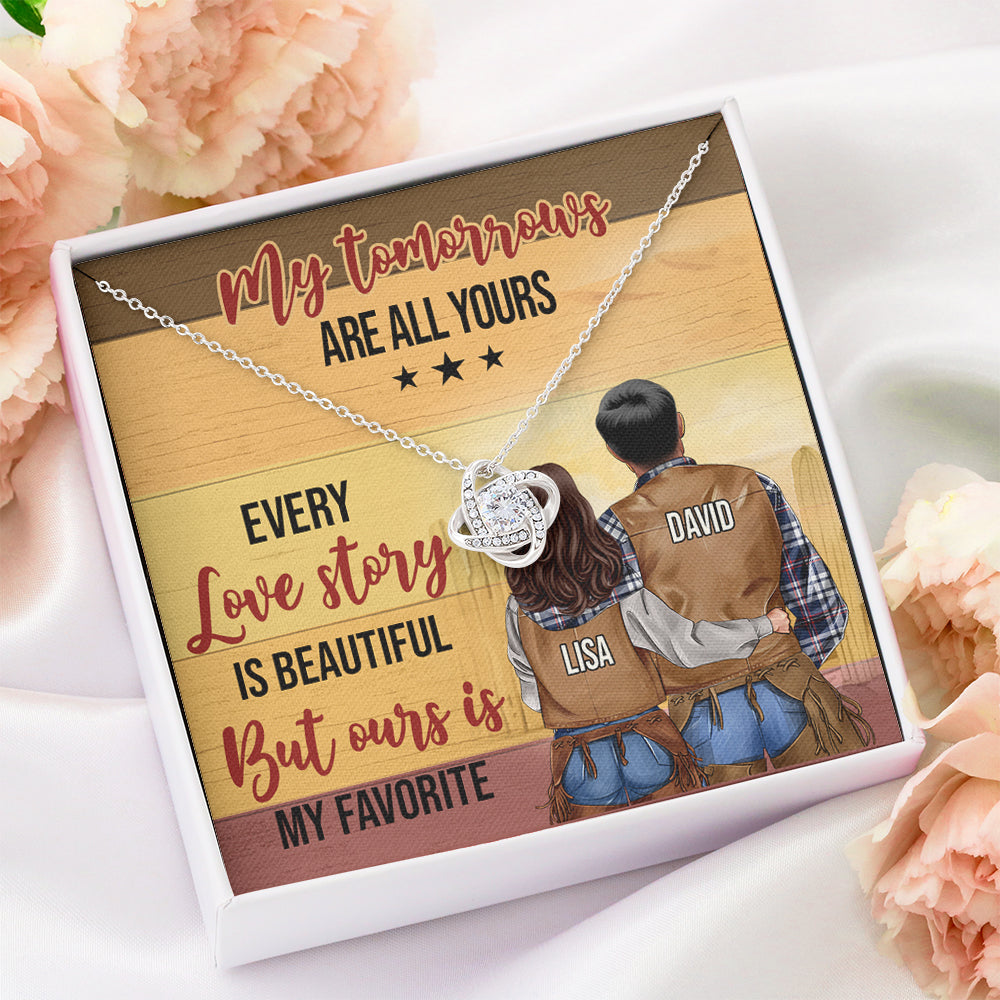 But Ours Is My Favorite – Personalized Love Knot Necklace – Gift For Cowboy & Cowgirl – Couple Shoulder To Shoulder