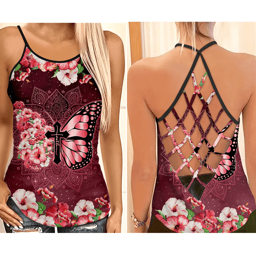 Butterfly Cross Tank Top, Tank Top Women, Gift For Women