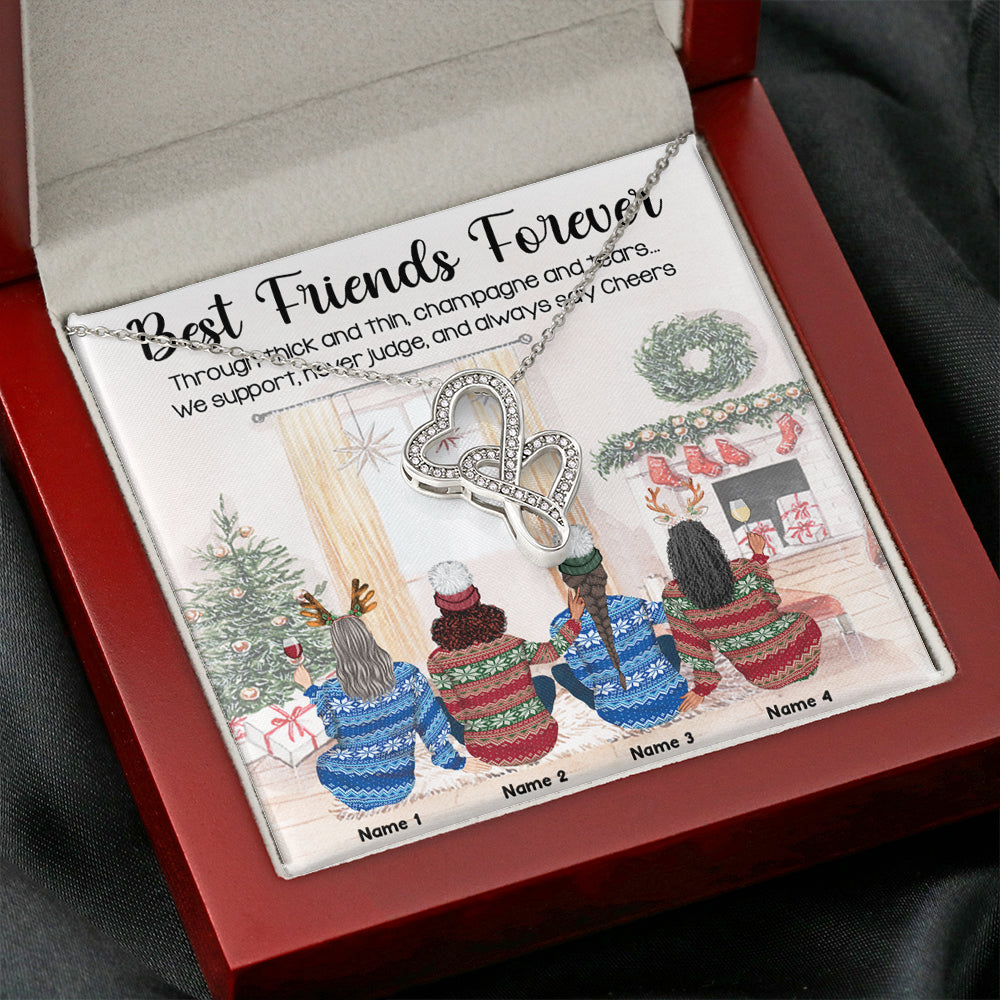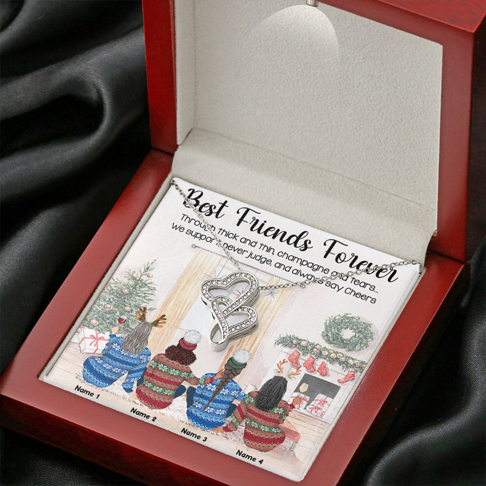 Friends Best Friends Forever Always Say Cheers – Personalized Double Hearts Necklace