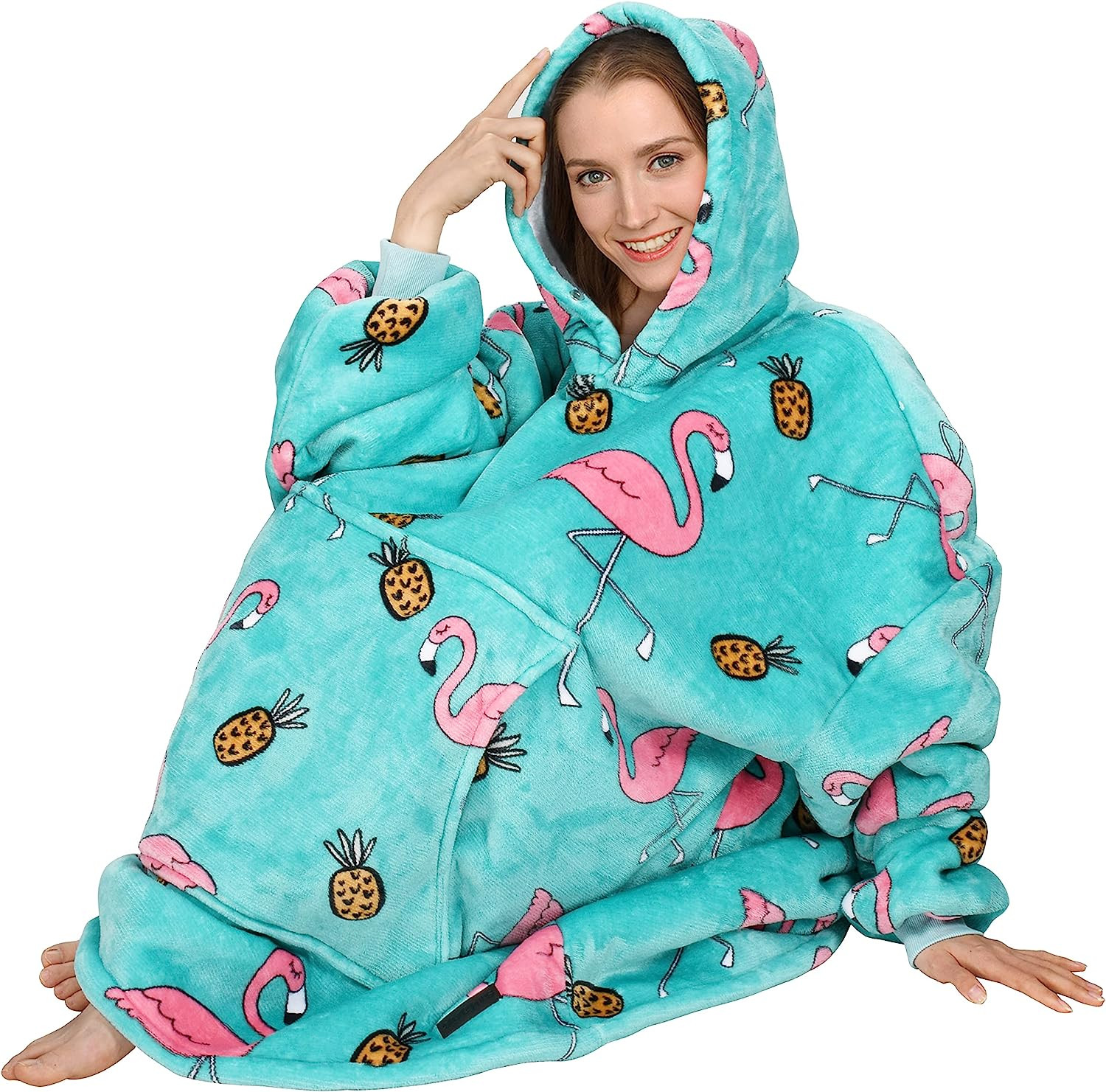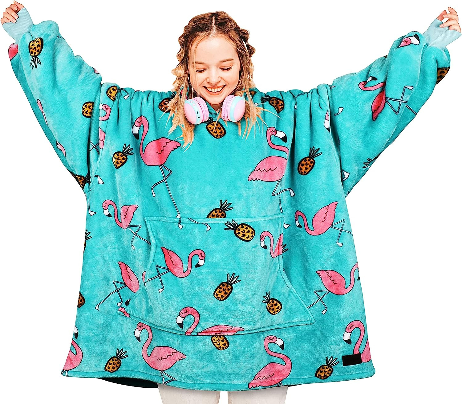 Green Flamingo Blanket Hoodie For Adults, Soft Warm Cozy Sherpa Hoodie For Adults & Teens, Gift For Men Women