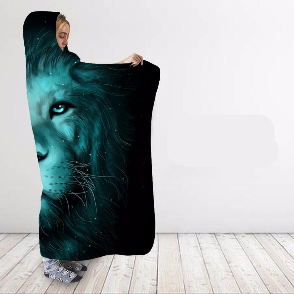 Green Glowing Lion Blanket Hoodie