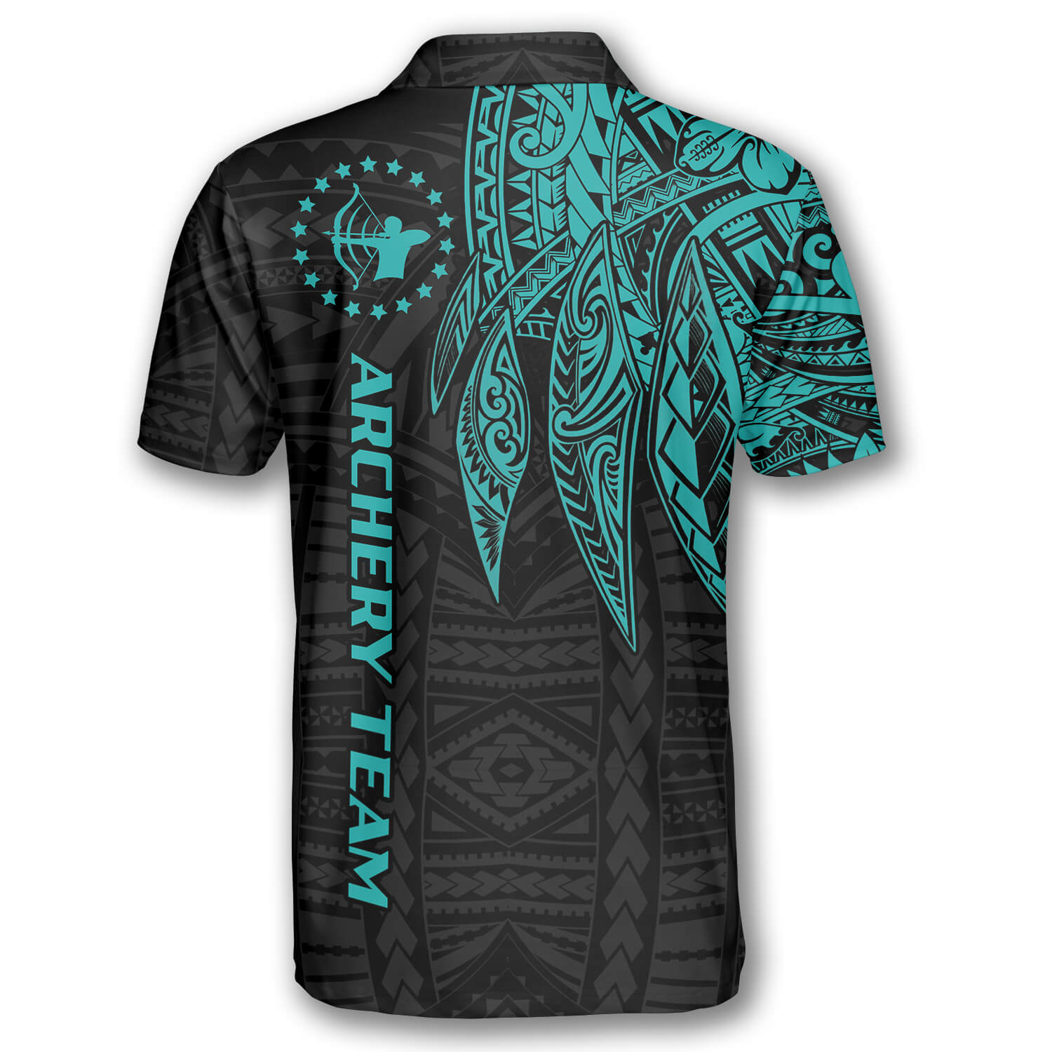 Green Tribal Custom Archery Shirts For Men, Custom Archery Polo Shirts
