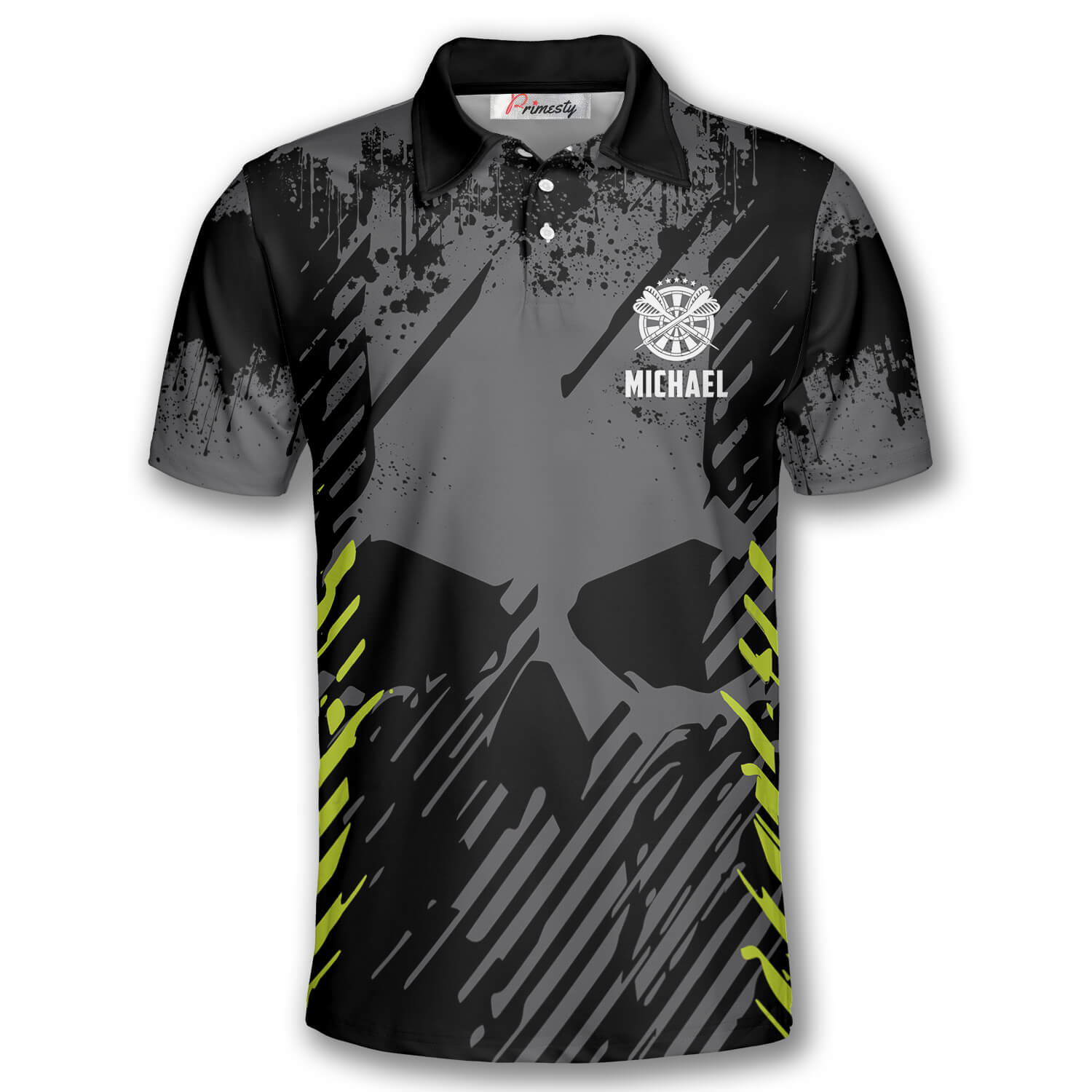 Grey Skull Paint Splash Custom Darts Shirts For Men, 3D All Printed Dart Shirt, Custom Name And Team Name Dart Polo Shirt
