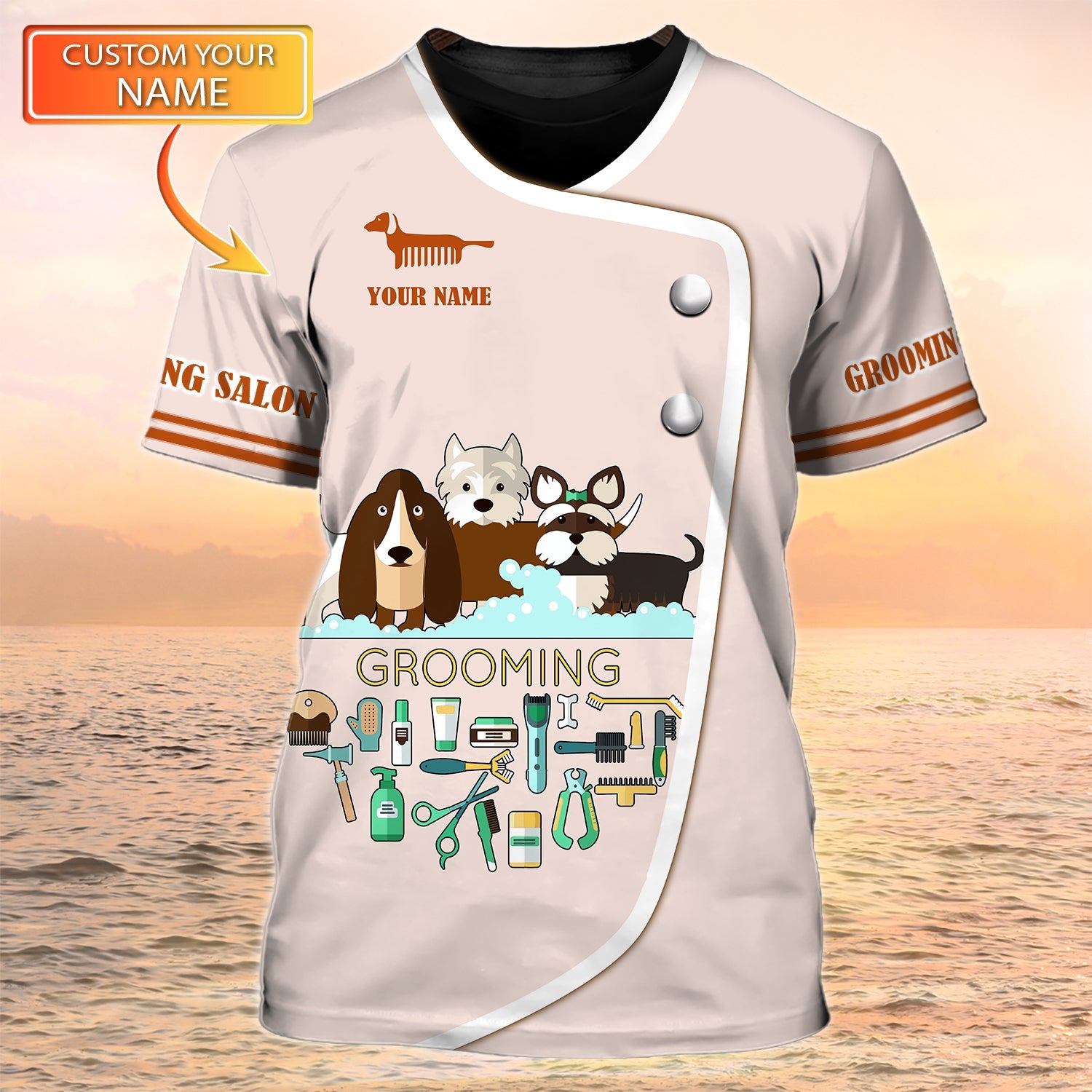 Grooming Salon Personalized Name 3D Tshirt Dog Groomer Uniform