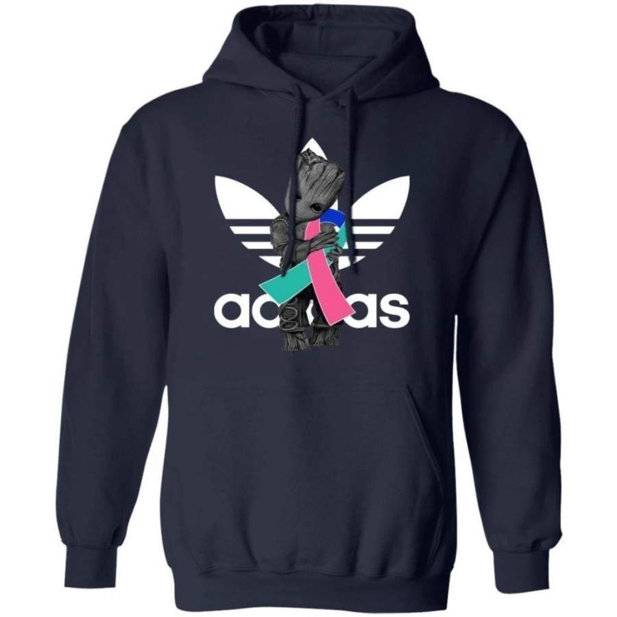 Groot Hugging Blue Pink Teal Ribbon Thyroid Cancer Awareness Hoodie For Cancer Warrior HA09