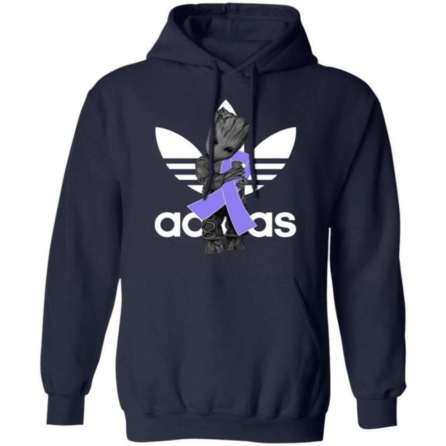 Groot Hugging Periwrinkle Blue Ribbon Stomach Cancer Awareness Hoodie For Cancer Warrior HA09