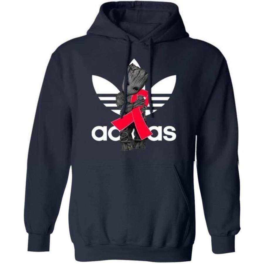Groot Hugging Red Ribbon Blood Cancer Awareness Hoodie For Cancer Warrior HA09