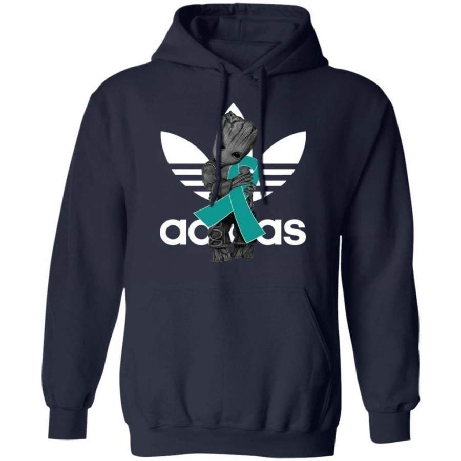 Groot Hugging Teal Ribbon Ovarian Cancer Awareness Hoodie For Cancer Warrior HA09
