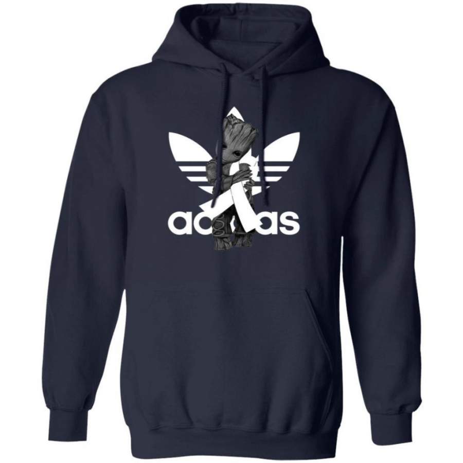 Groot Hugging White Ribbon Lung Cancer Awareness Hoodie For Cancer Warrior HA09