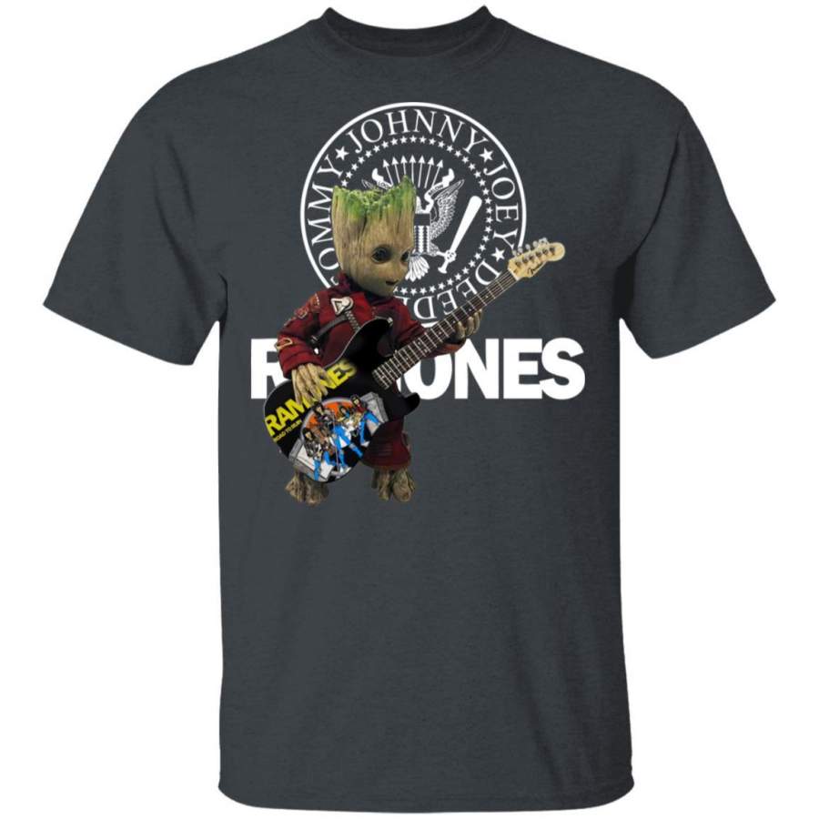 Groot Playing Guitar Bass The Ramones T-shirt Rock Tee VA04