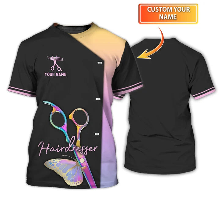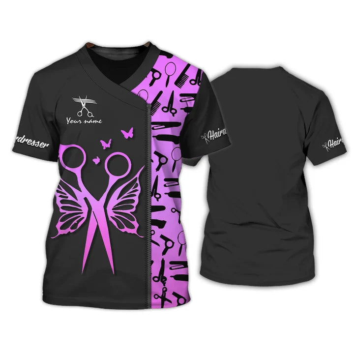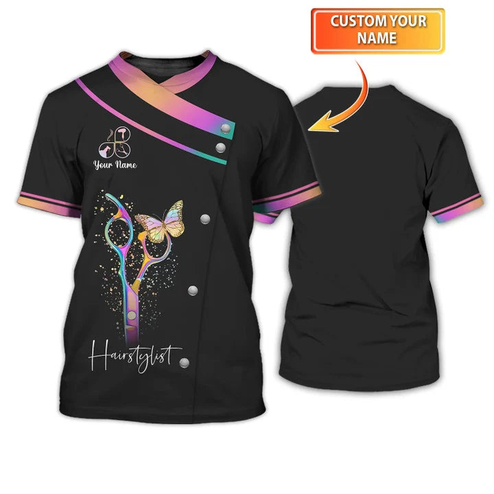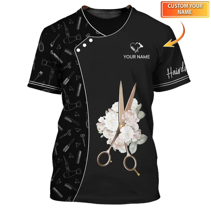 Hair Salon Uniform, Hairdresser Custom Name Shirt, Hairstylist Black Tee Shirt