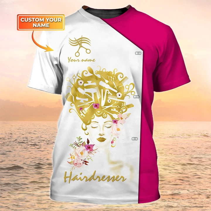 Hairdresser Shirt, Custom Hair Salon Uniform Shirt Hairstylist Tshirt Pink & White, Hairstylist Shirt, Gift For Hairdresser