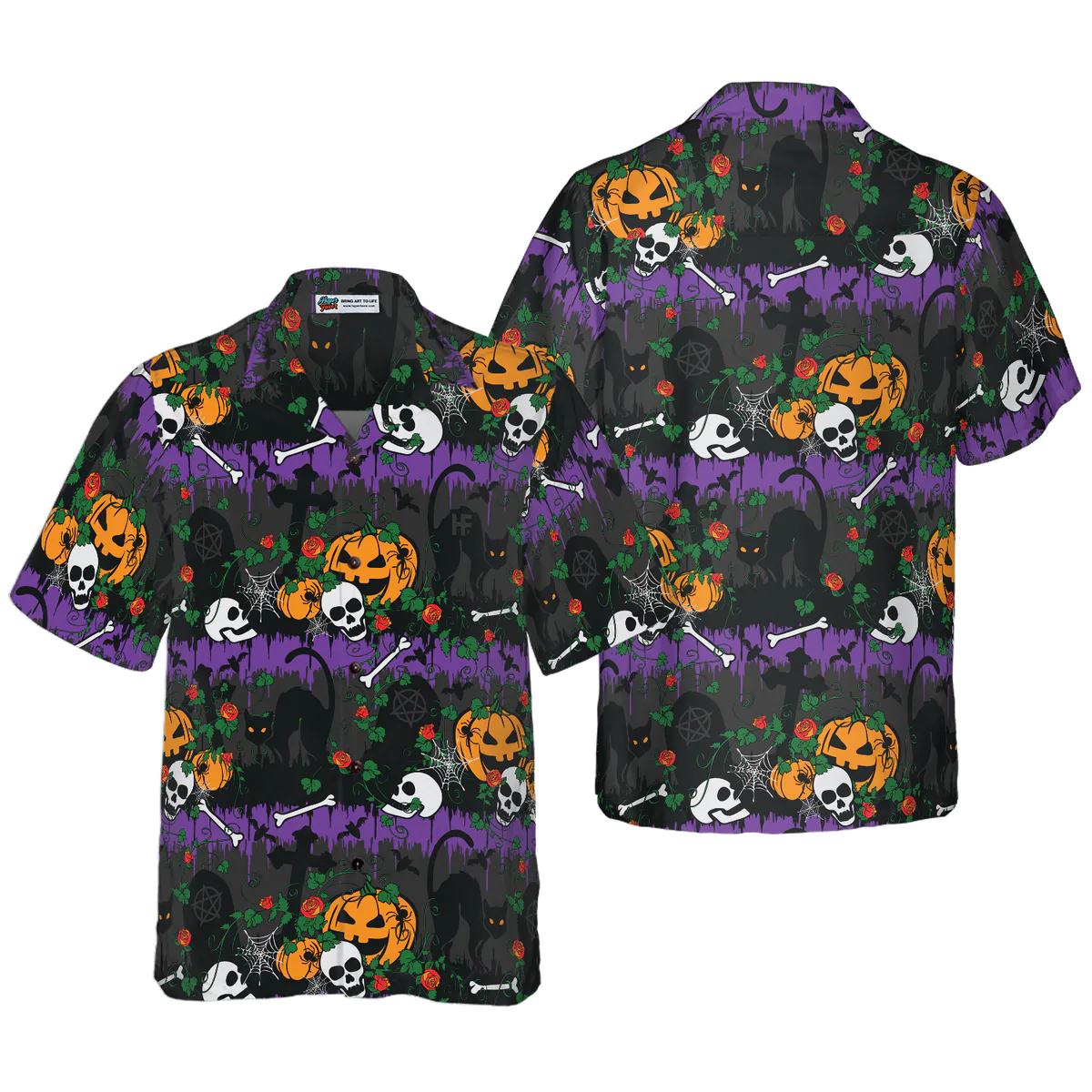 Halloween Pumpkin And Black Cats Hawaiian Shirt, Halloween Funny Shirt