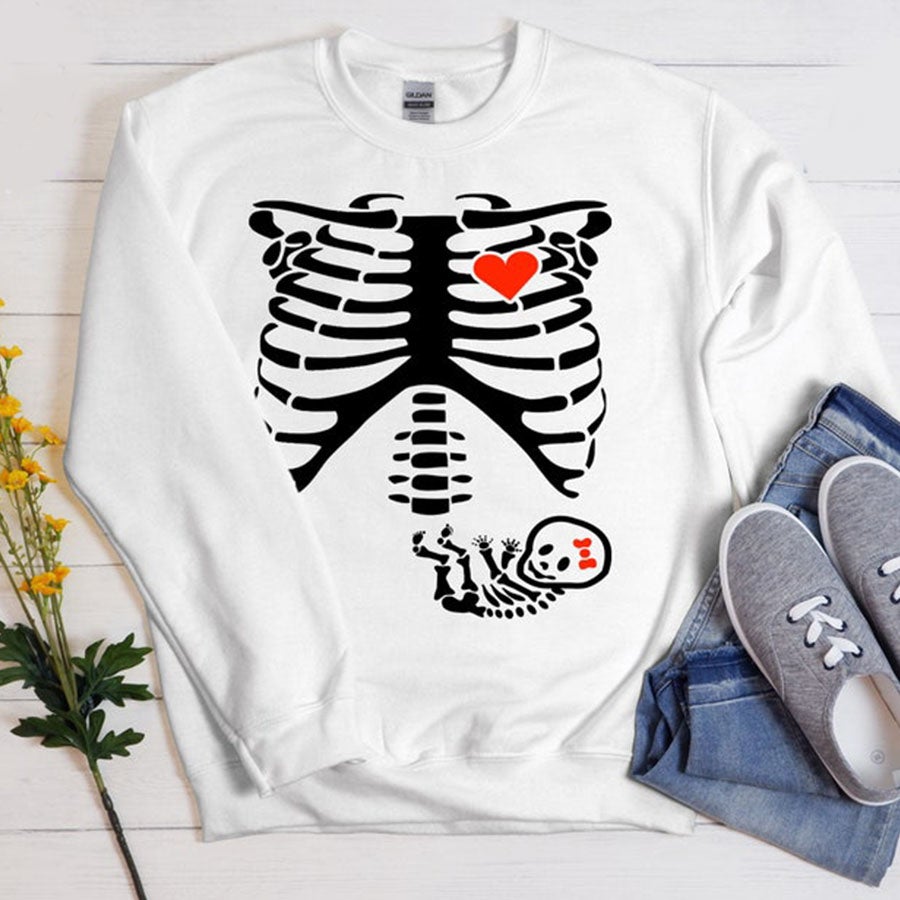 Halloween Skeleton Maternity Sweatshirt, Pregnant Halloween Shirt, Pregnancy Announcement Shirt, Baby Announcement Sweatshirt