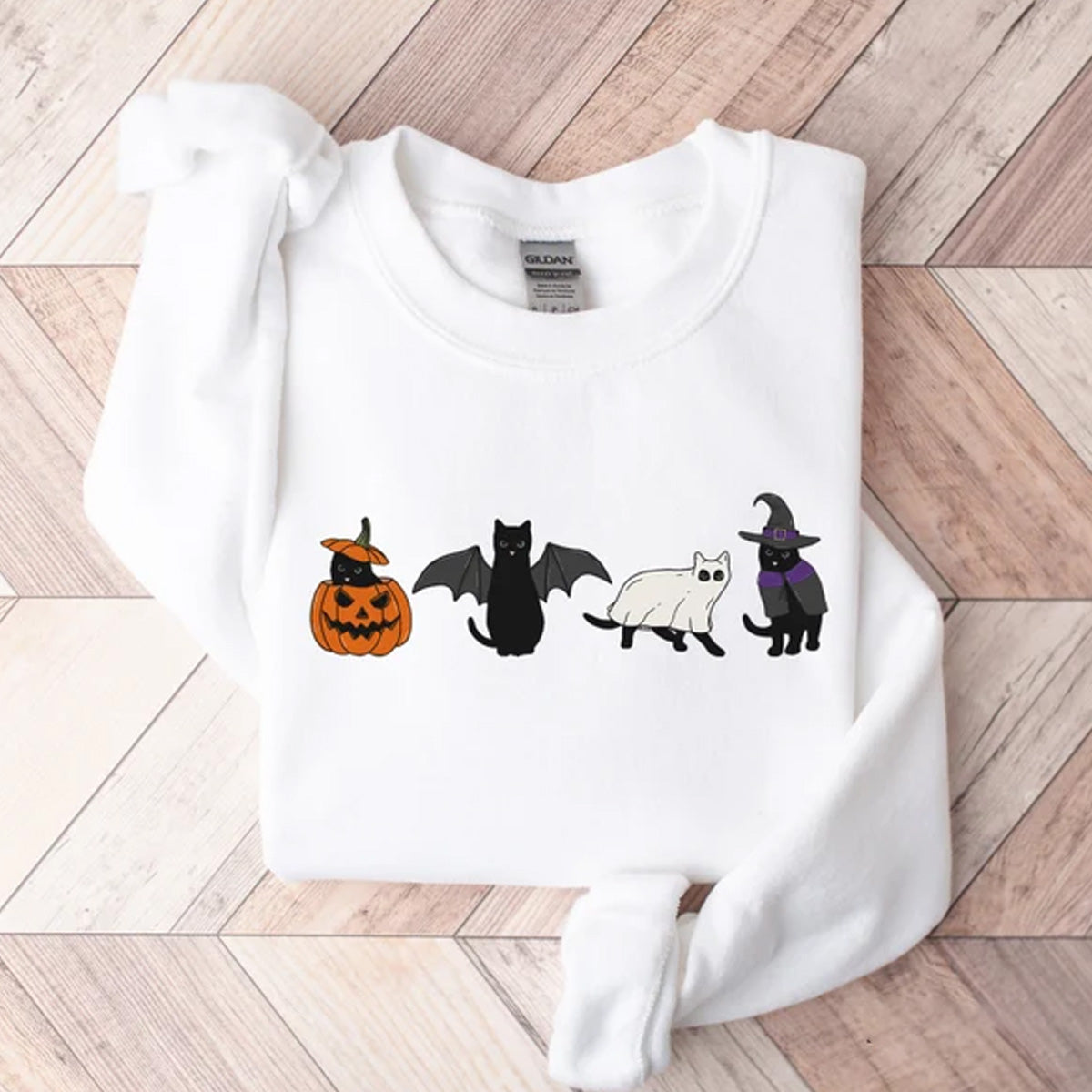 Halloween Sweatshirt, Cat Sweatshirt, Ghost Shirt, Halloween Sweater, Halloween Cat Shirt, Cat Lover Shirt