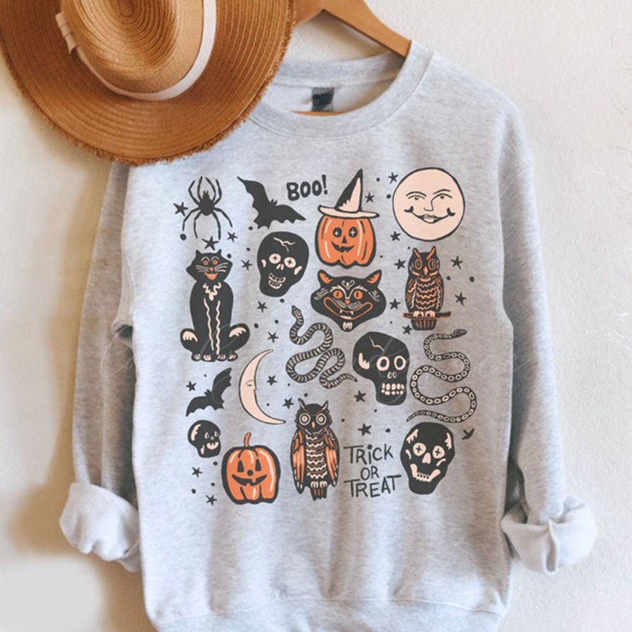 Halloween Sweatshirt Vintage, Halloween Crewneck, Vintage Halloween Crewneck, Fall Apparel, Witchy Clothing, Witchy Clothes, Fall Crewnecks Sweatshirt