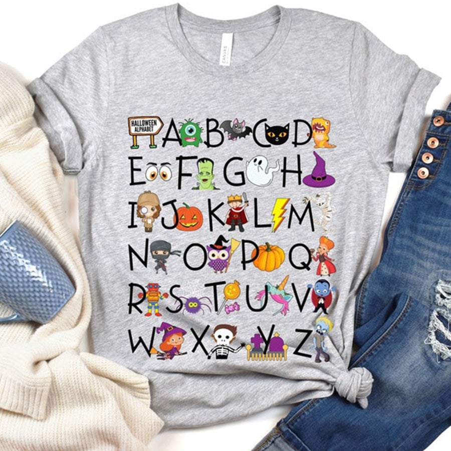 Halloween Teacher Shirt, Halloween Alphabet Shirt, Teacher Shirts, Teacher Fall Shirt, Spooky Teacher Shirt, Kindergarten Teacher T-Shirt