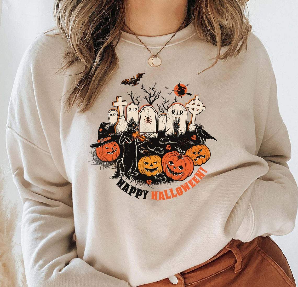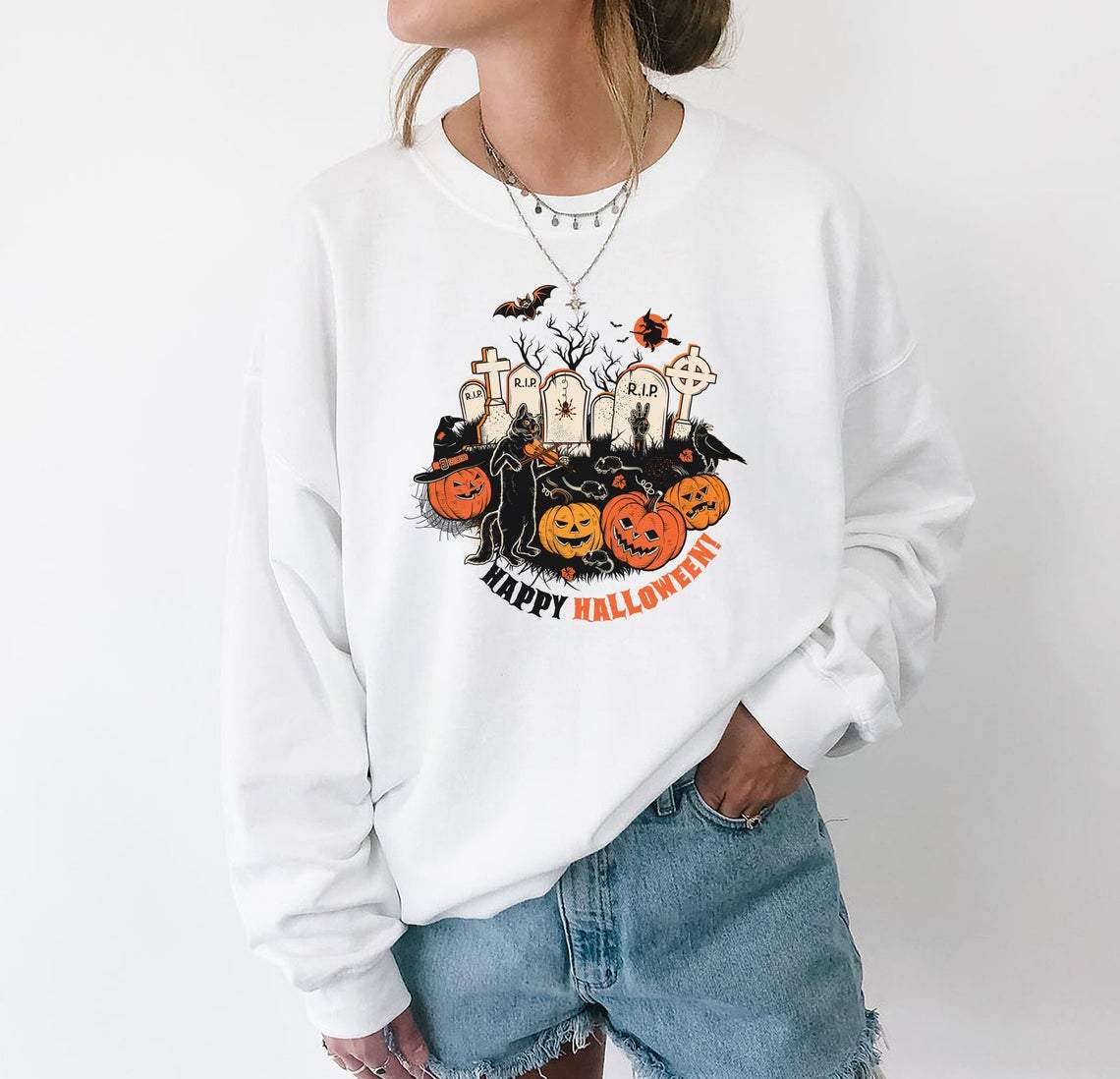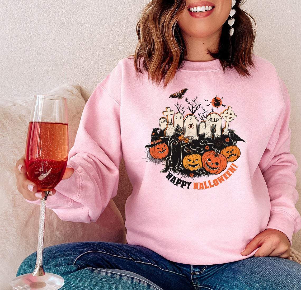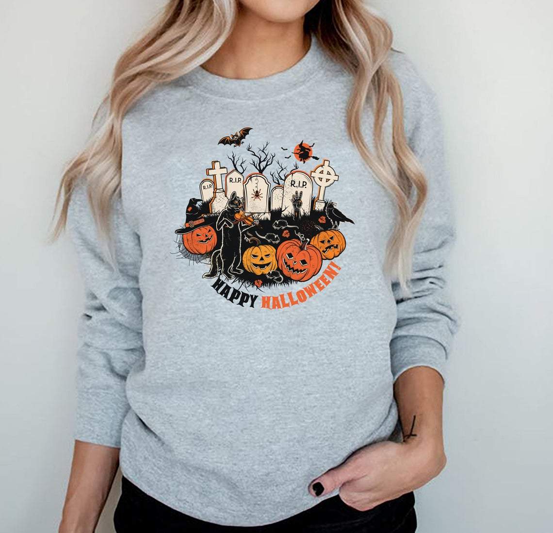 Happy Halloween Sweatshirt, Thanksgiving Graphic Sweatshirt, Cute Pumpkin Sweatshirt,Pumpkin Sweatshirt, Halloween Elements Sweater
