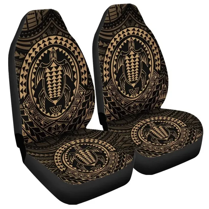 Hawaiian Kakau Honu Arc Polynesian Gold Printed Car Seat Covers