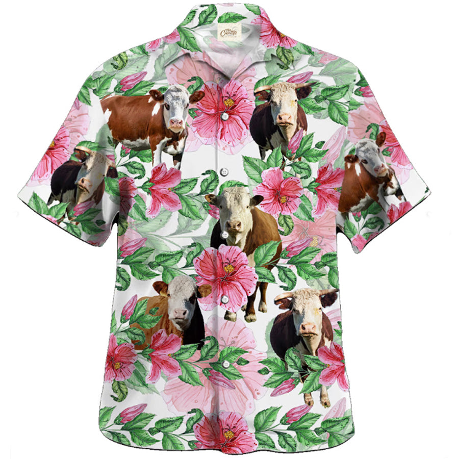 Hereford Cow Hawaiian Shirt, Farmer Hawaiian Shirts, Summer Tropical Shirts, Gift For Him, Funny Hawaiian Shirts