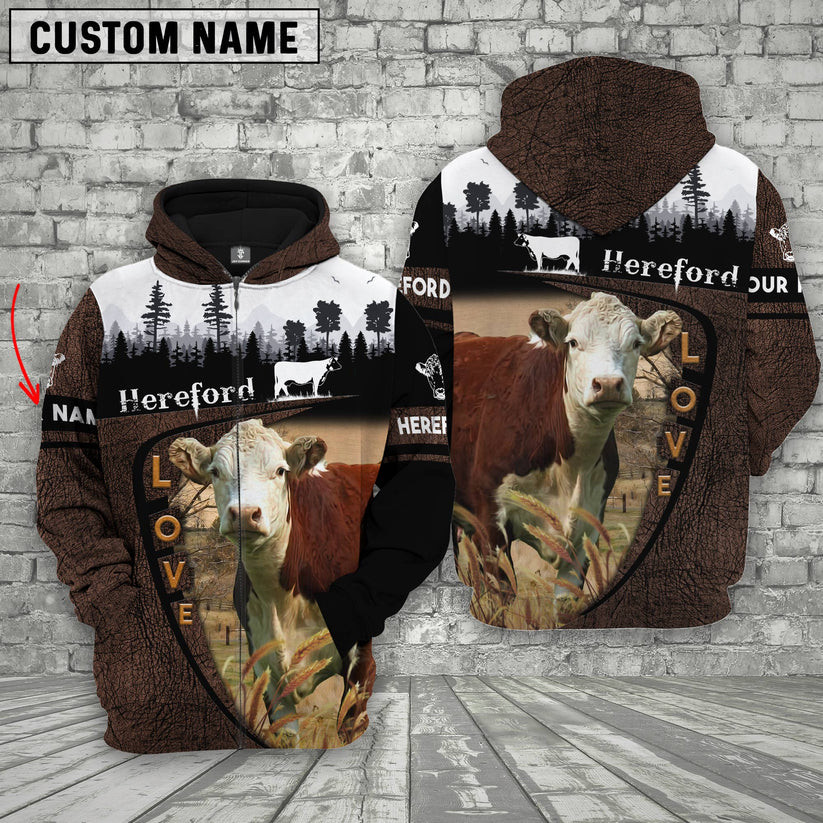 Hereford Farming Leather Pattern Personalized 3D Zip Hoodie