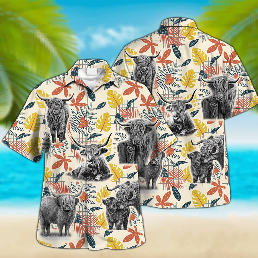 Highland Cow Hawaiian Shirt For Farm Lovers, Summer Hawaiian Shirt For Men And Women