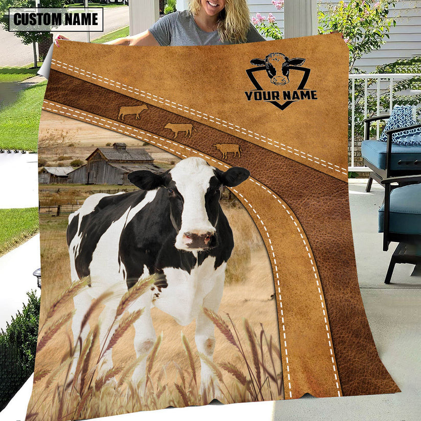Holstein Custom Name Fleece Blanket, Spherpa Blanket Cow Blanket 50X60, Gift For Farmer