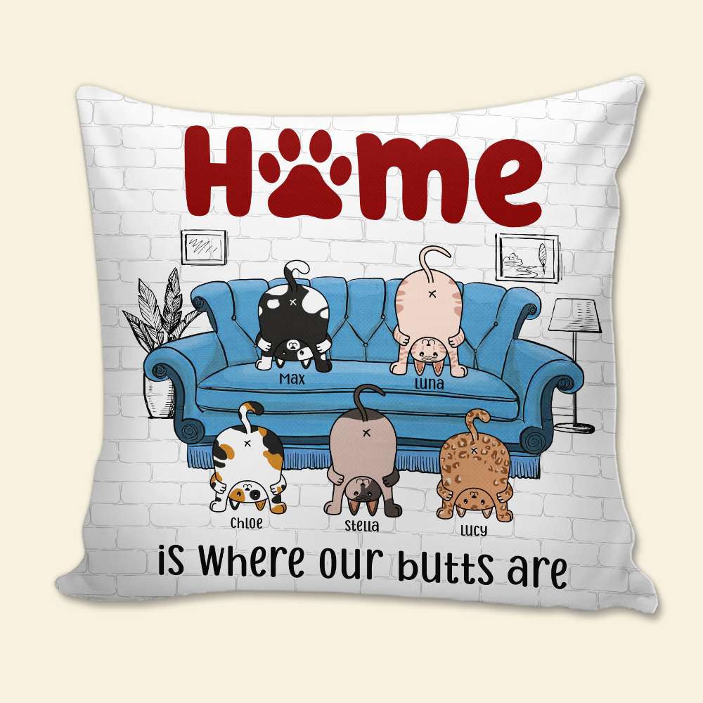 Home Is Where My Butt Is, Personalized Square Pillow, Cute Cats Showing Butts Pillow, Gift For Cat Lovers