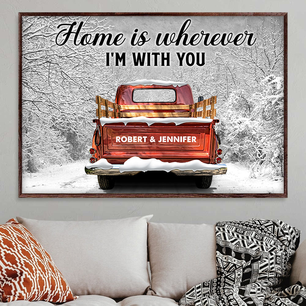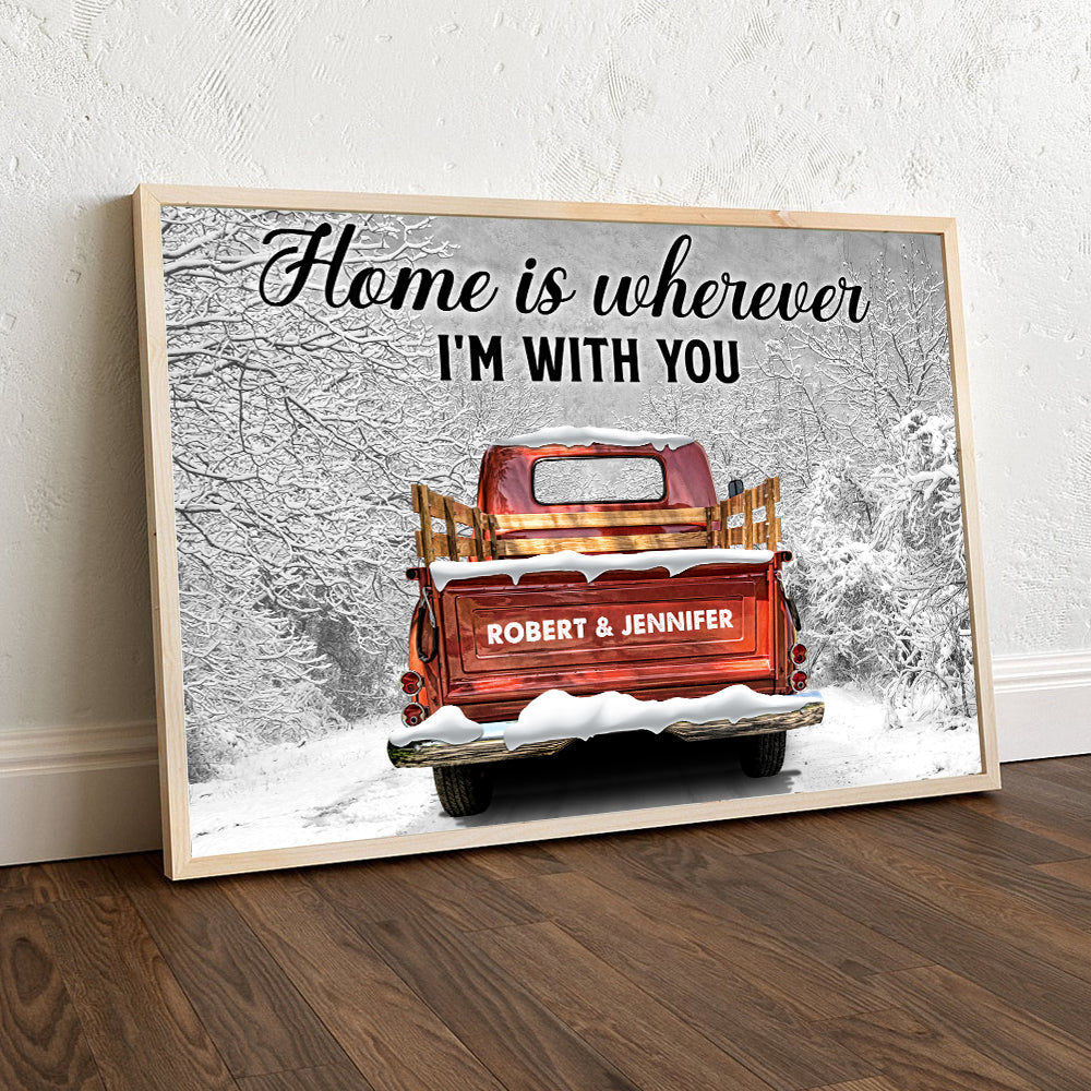 Home Is Wherever I’M With You Poster – Custom Family Name – Vintage Truck