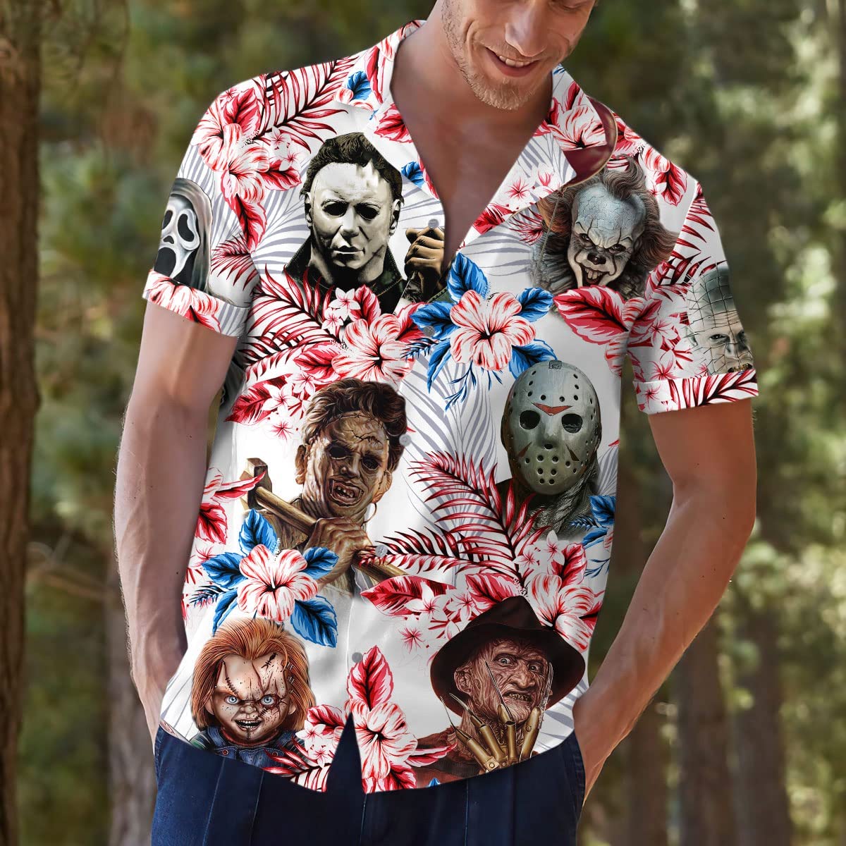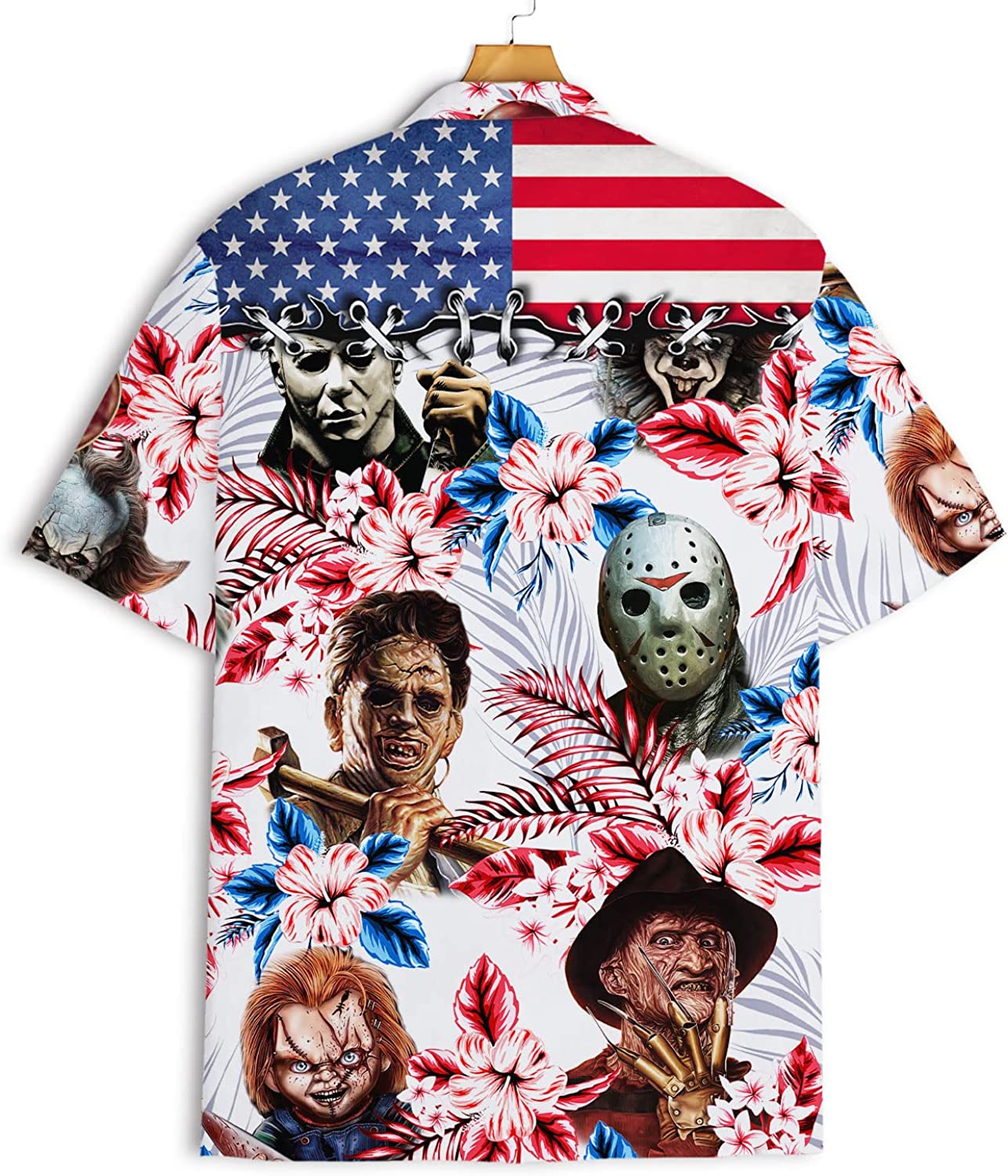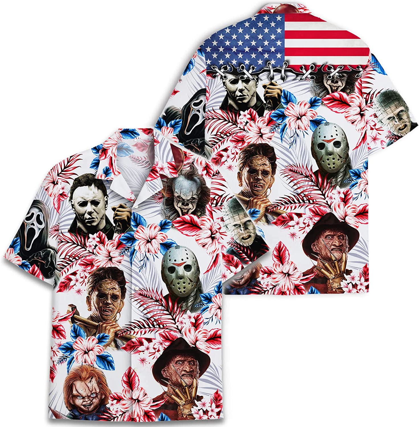 Horror Halloween Hawaiian Shirt, Horror Halloween Tropical Flower Beach Gift Casual Short Sleeve Button Shirt