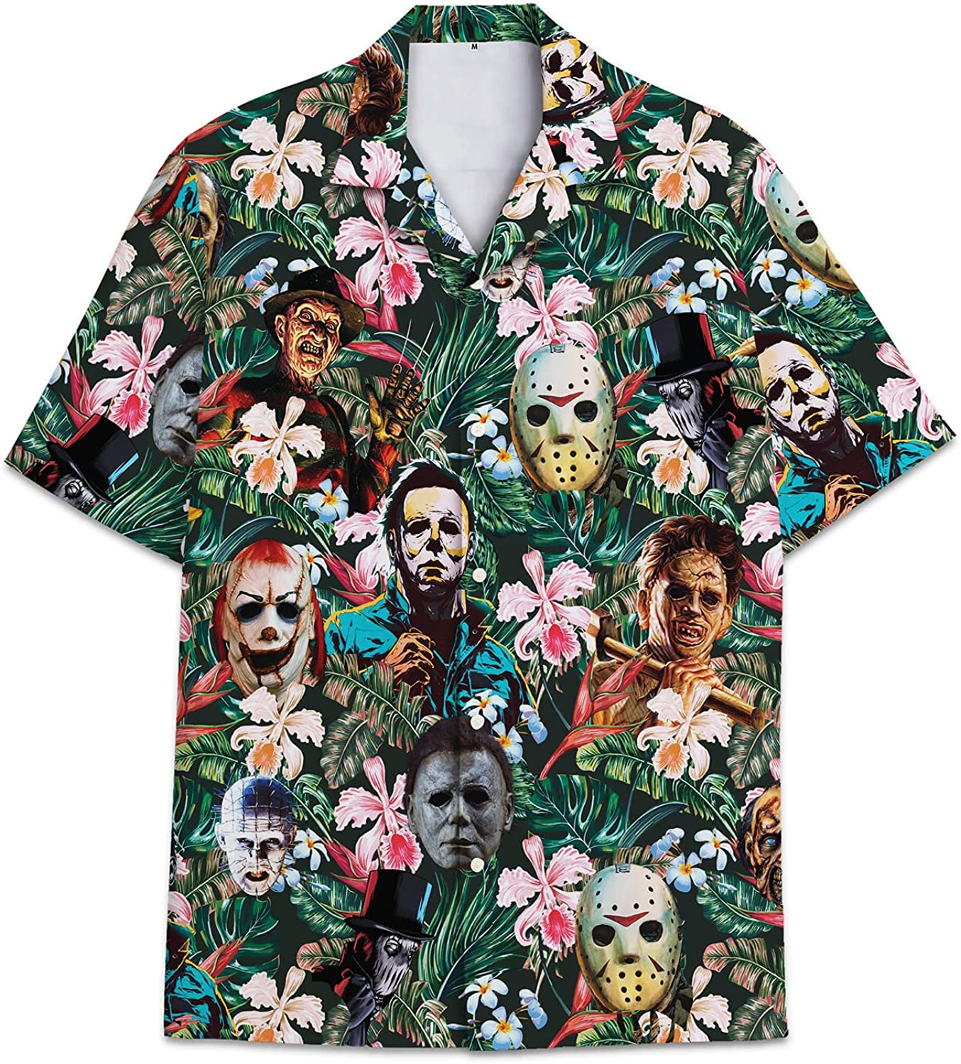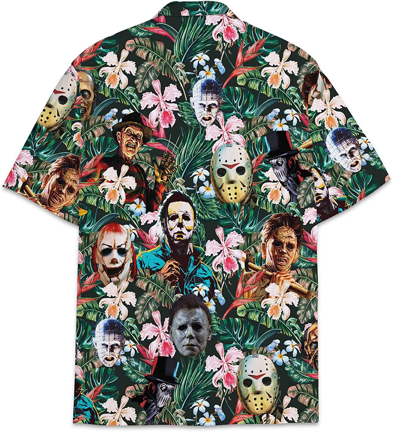 Horror Hawaiian Shirt Funny Halloween Tropical Flower Beach Button Up Sleeve Shirts Men