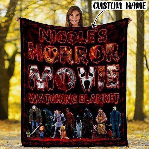 Horror Movie Watching Quilt Blanket, Custom Name Horror Halloween Blanket, Halloween Home Decor- Gift For Family
