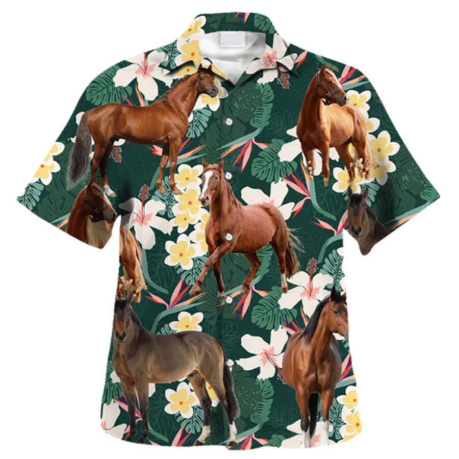 Horse Hawaiian Shirt, Farm Lover Hawaii Shirt, Hawaiian Shirt Men, Hawaiian Casual Button Down Shirt