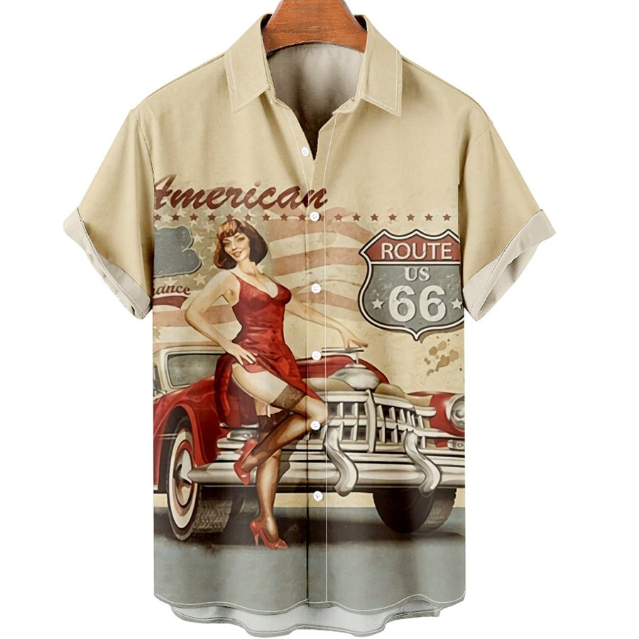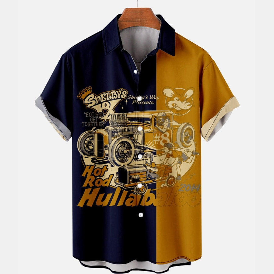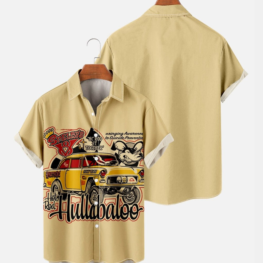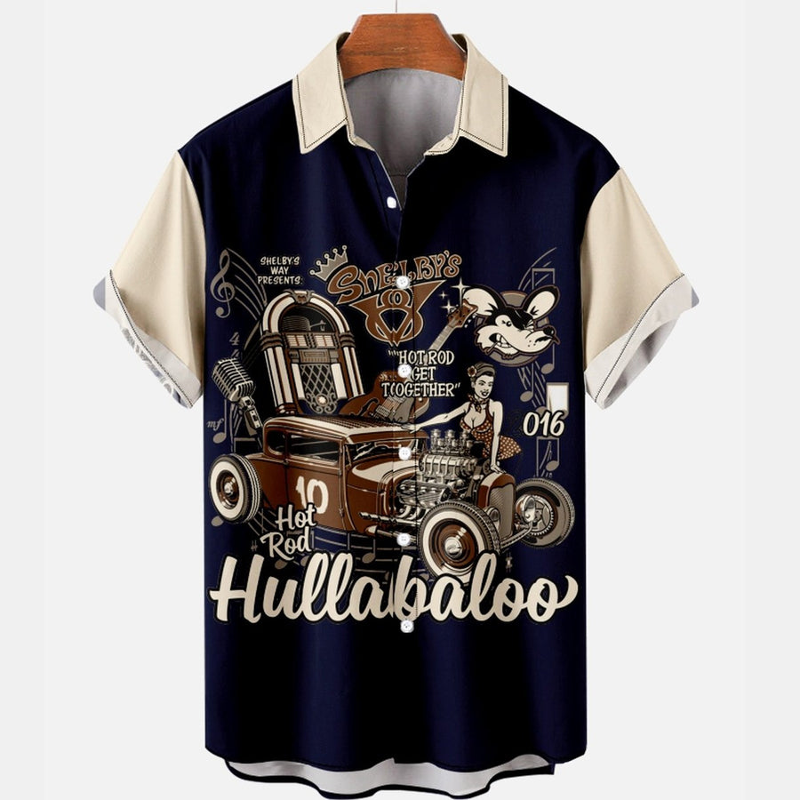 Hullaballo Car Men’S All Over Letter Poster Print Street, Hawaiian Shirt Vintage, Hawaii Shirts Mens