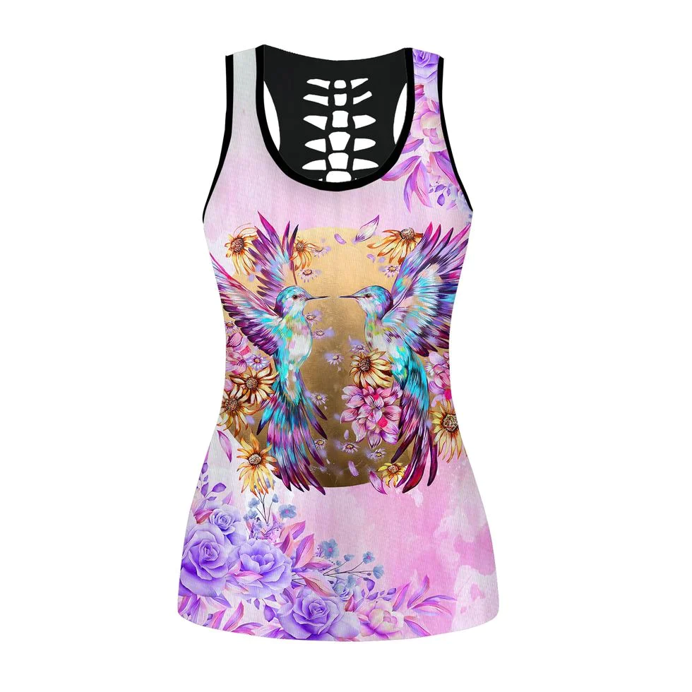 Hummingbird Set Hollow Tank Top & Legging For Summer Running, Women’S Tank Tops For Yoga, Outfit Workout Clothing For Her