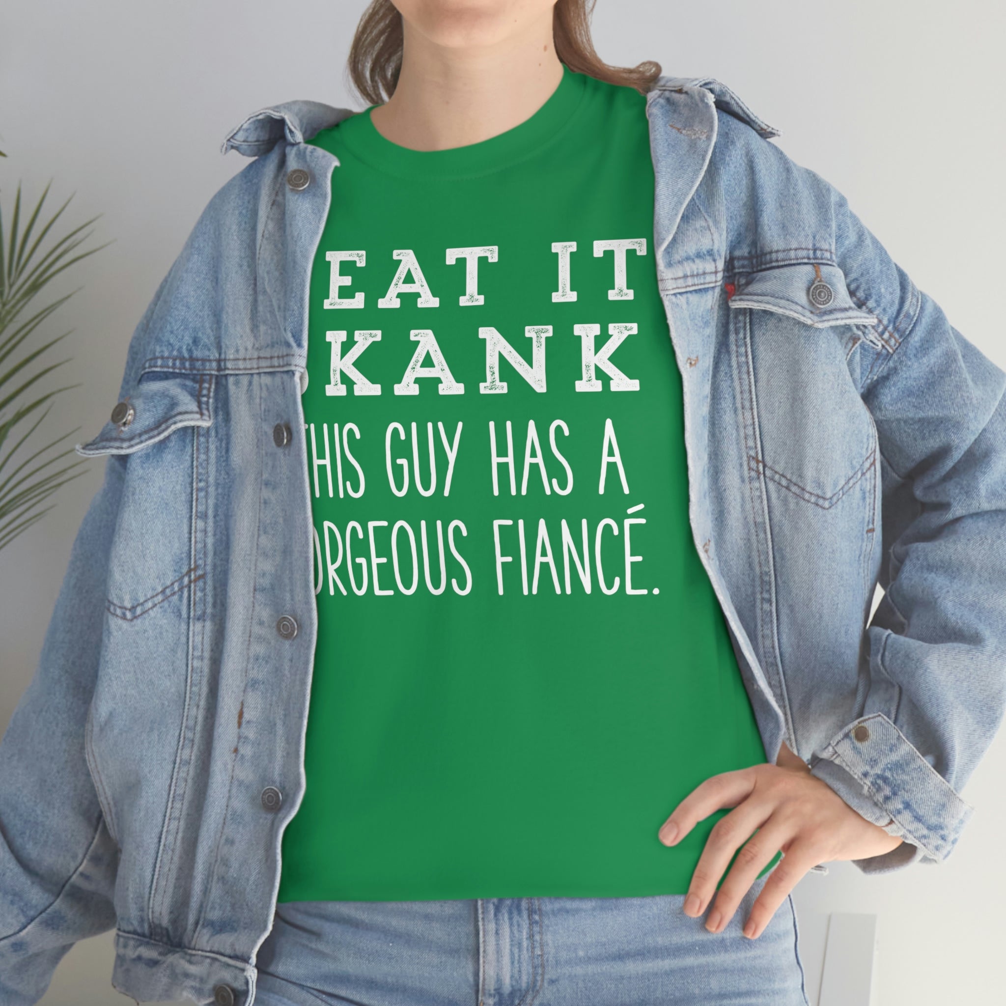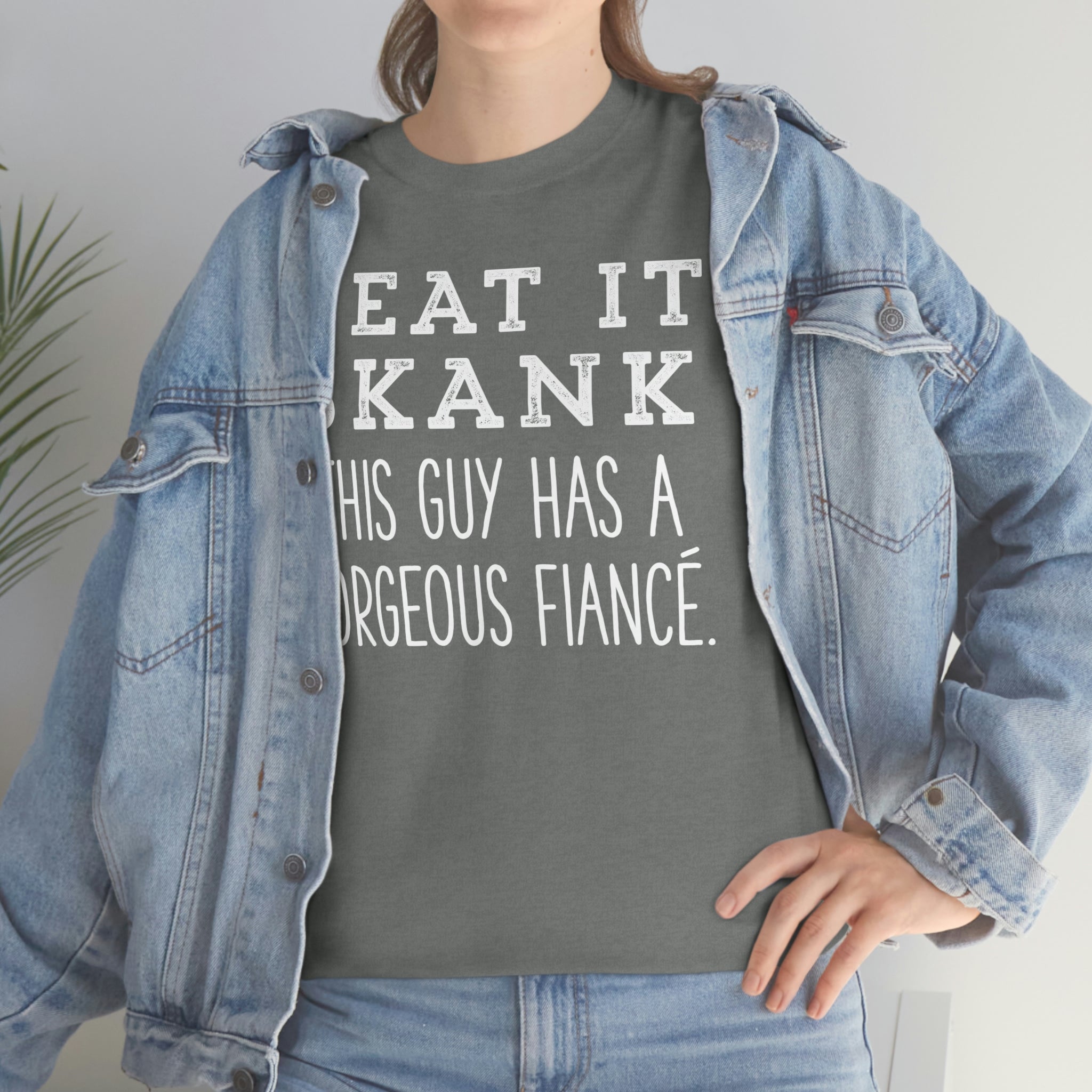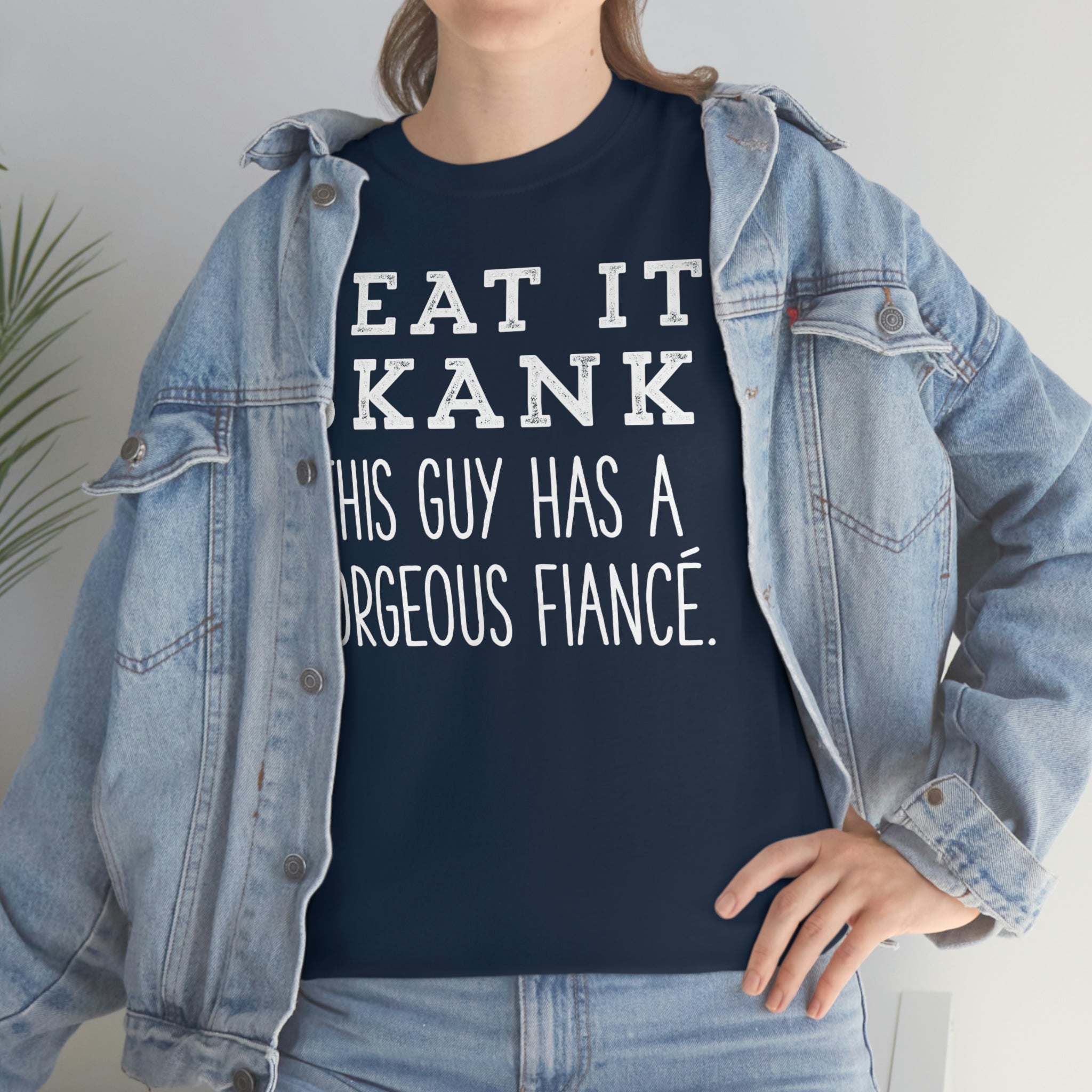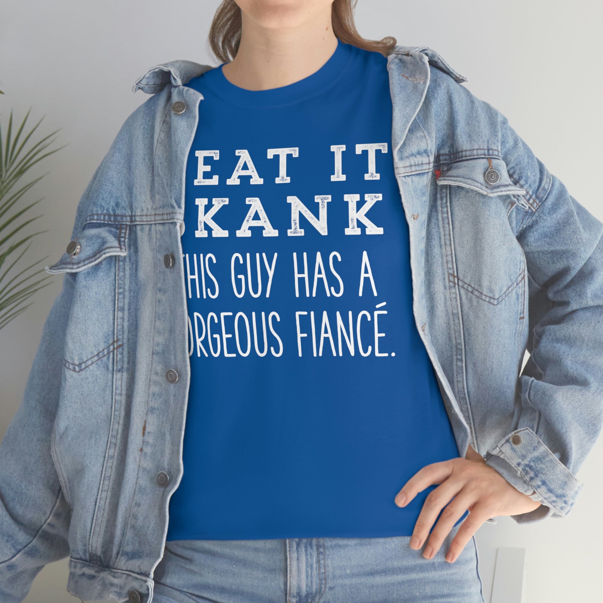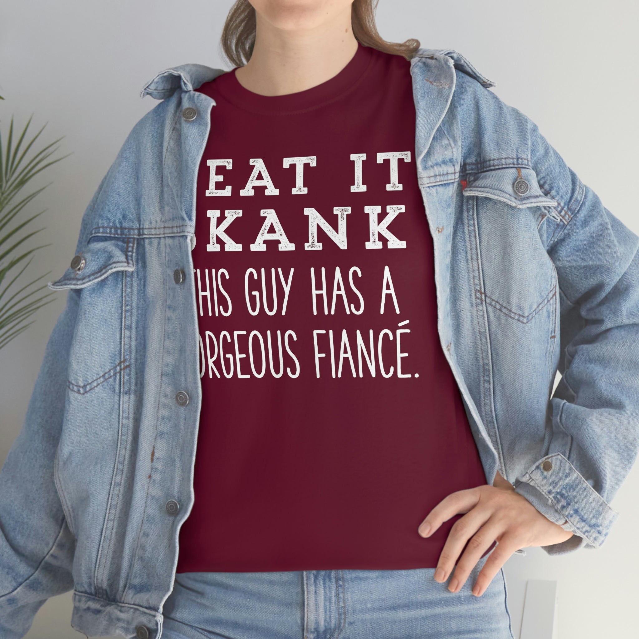 Humorous Supportive Fiancee Sarcastic Statements Line Pun Hilarious Prideful Partners Mockeries Wedding Gag Black Shirt / White Print For
