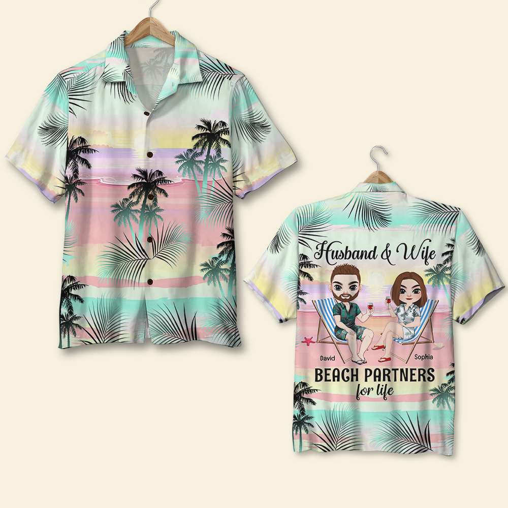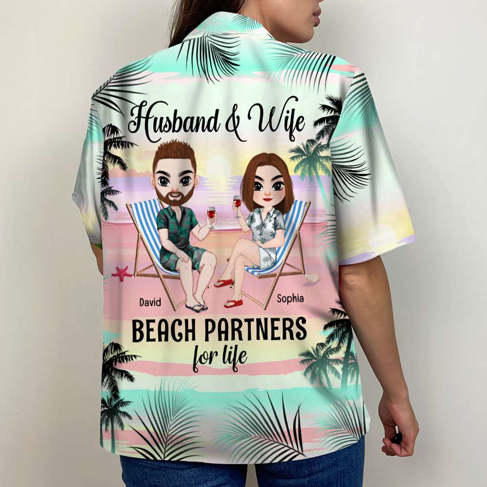 Husband And Wife Beach Partners For Life, Personalized Hawaiian Shirt, Couple Relaxing Seashore Hawaiian Shirt, Summer Vacation Trip Gift
