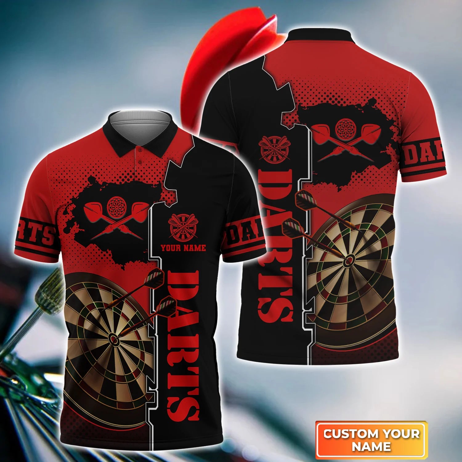 Throwing Bulleyes Dartboart Personalized Name 3D Polo Shirt For Darts Team Player, Gift For Darts Player, Dart Team Shirts, Polo Shirt For Men